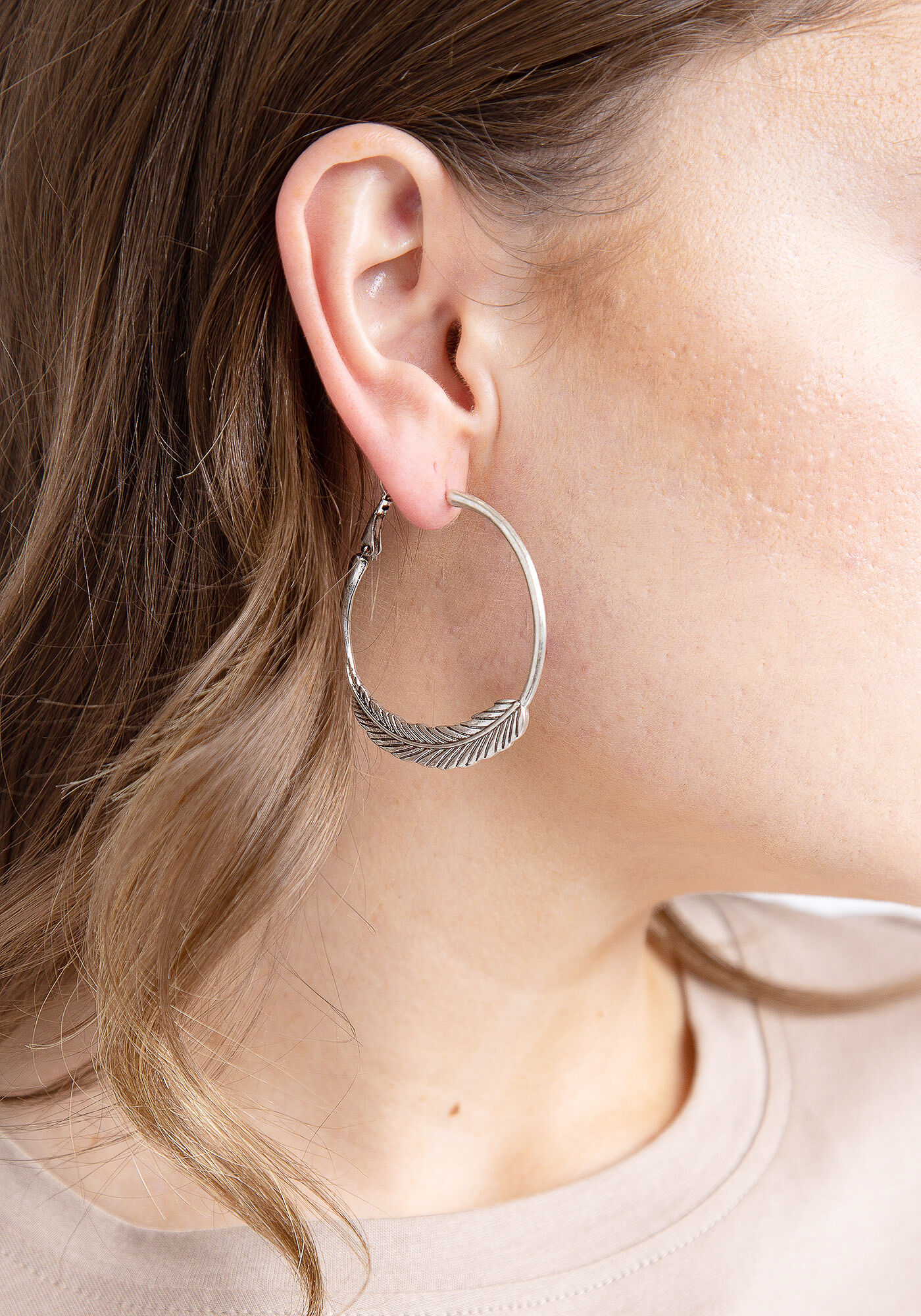 Clutchless Leaf Hoop Earring