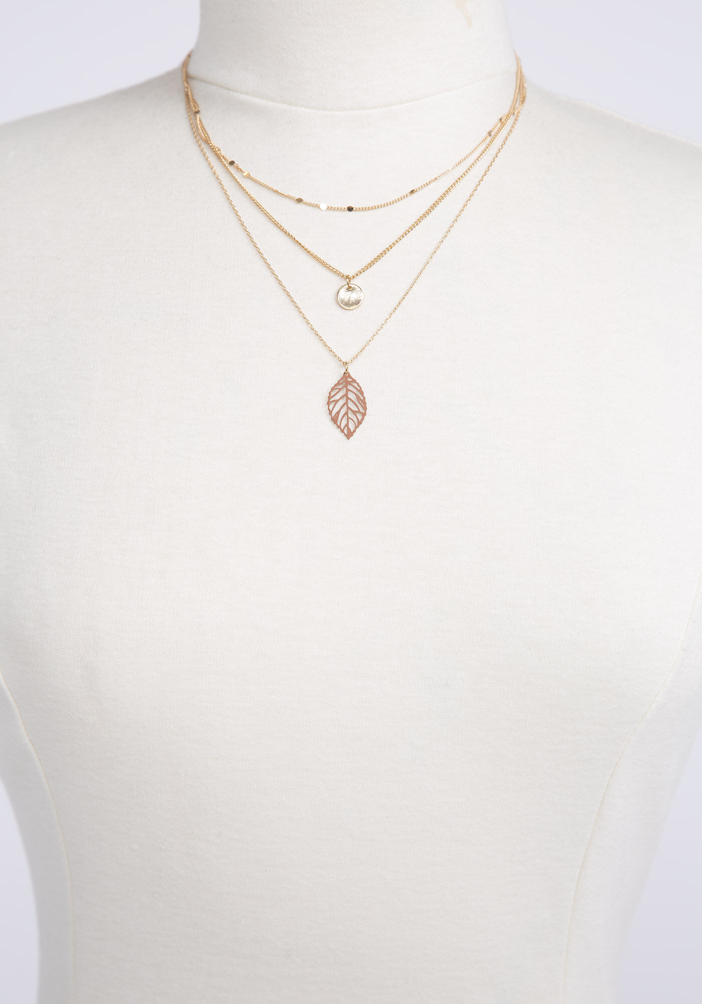 Filagree Leaf and Disc Gold Necklace