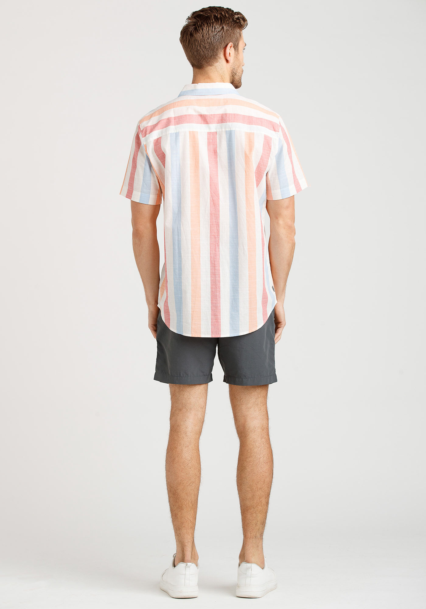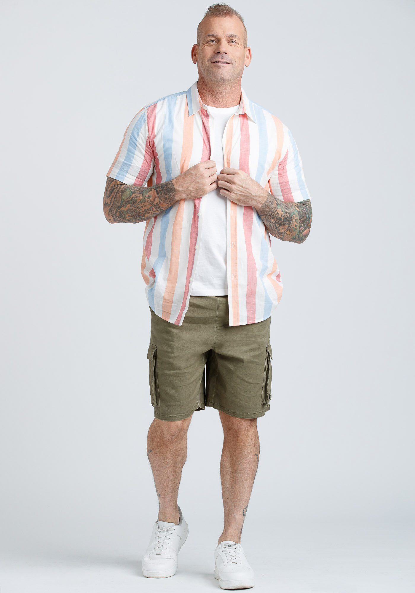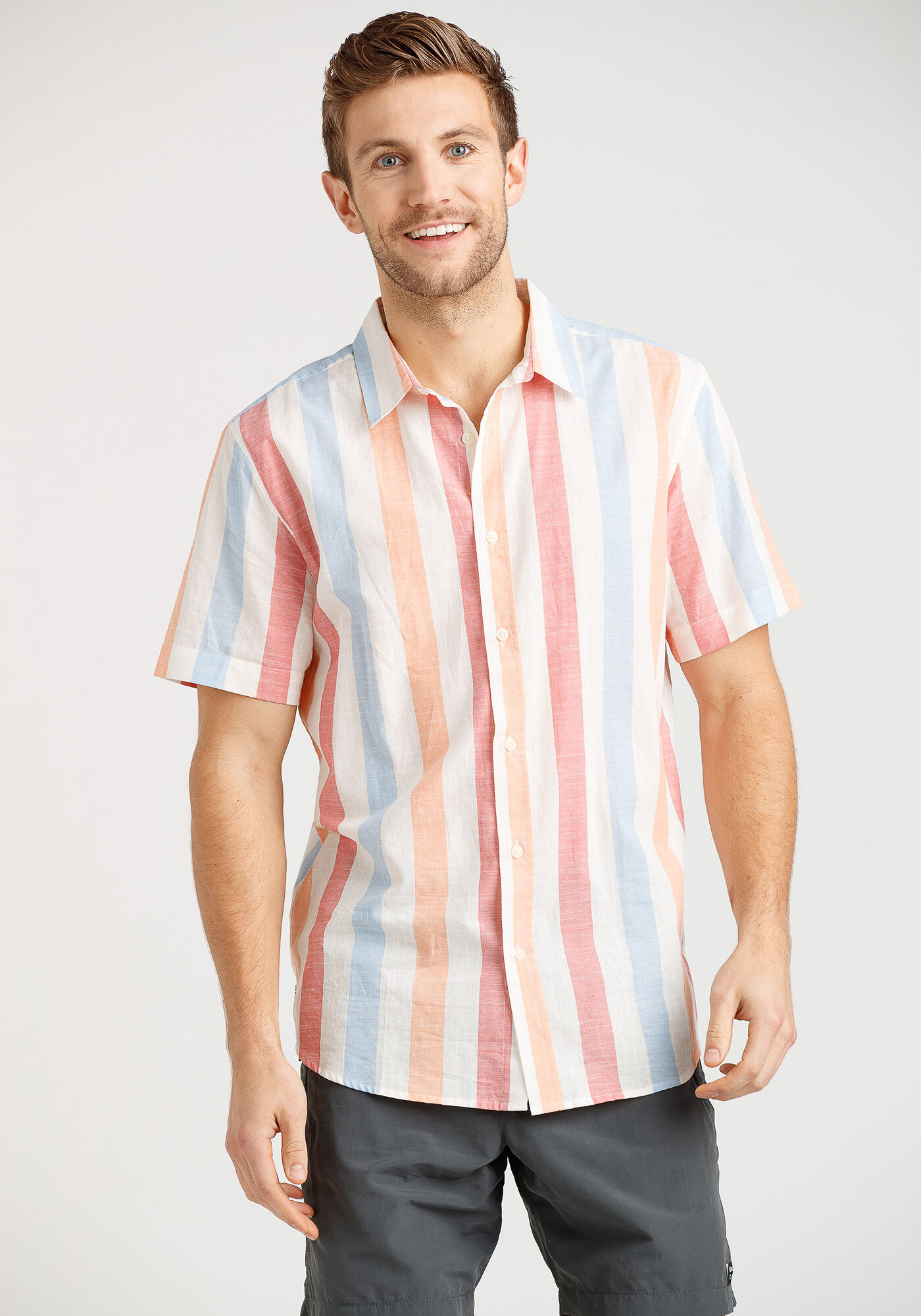 Rated 5 out of 5 by from Cool and colourful!! Was wondering what my husbands reaction would be, but no problem!!It is lightweight and cool for these hot days!!He is tanned and the colour looks terrific on him!! It washes very well and comes out of the dryer wrinkle free!!