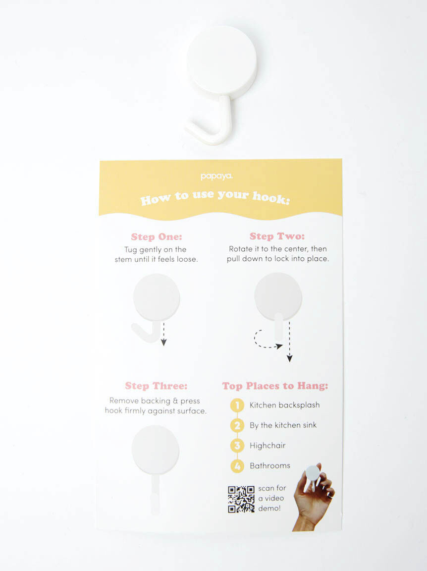 - Hang it. Each pack comes with its own hook! Hang after use for a no-smell, quick-dry, easy-storage solution.