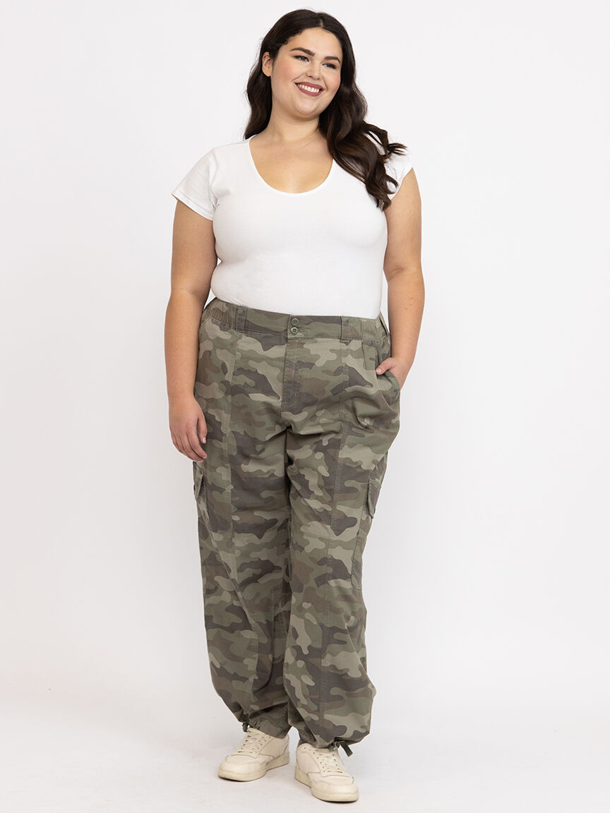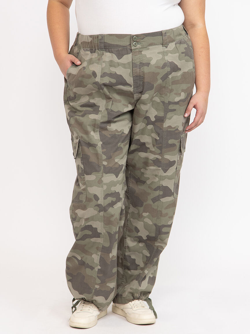 Women's 2 Button Camo Baggy Cargo Pants Plus