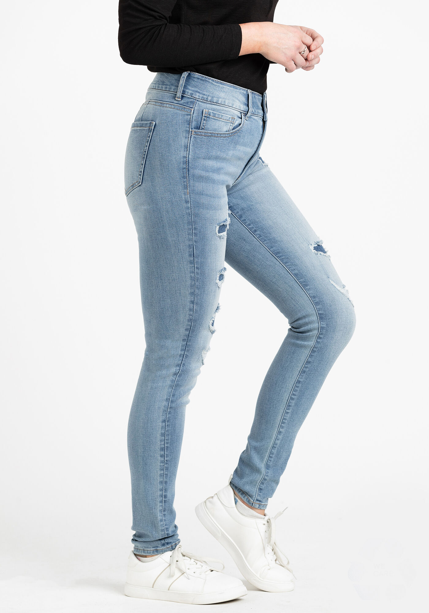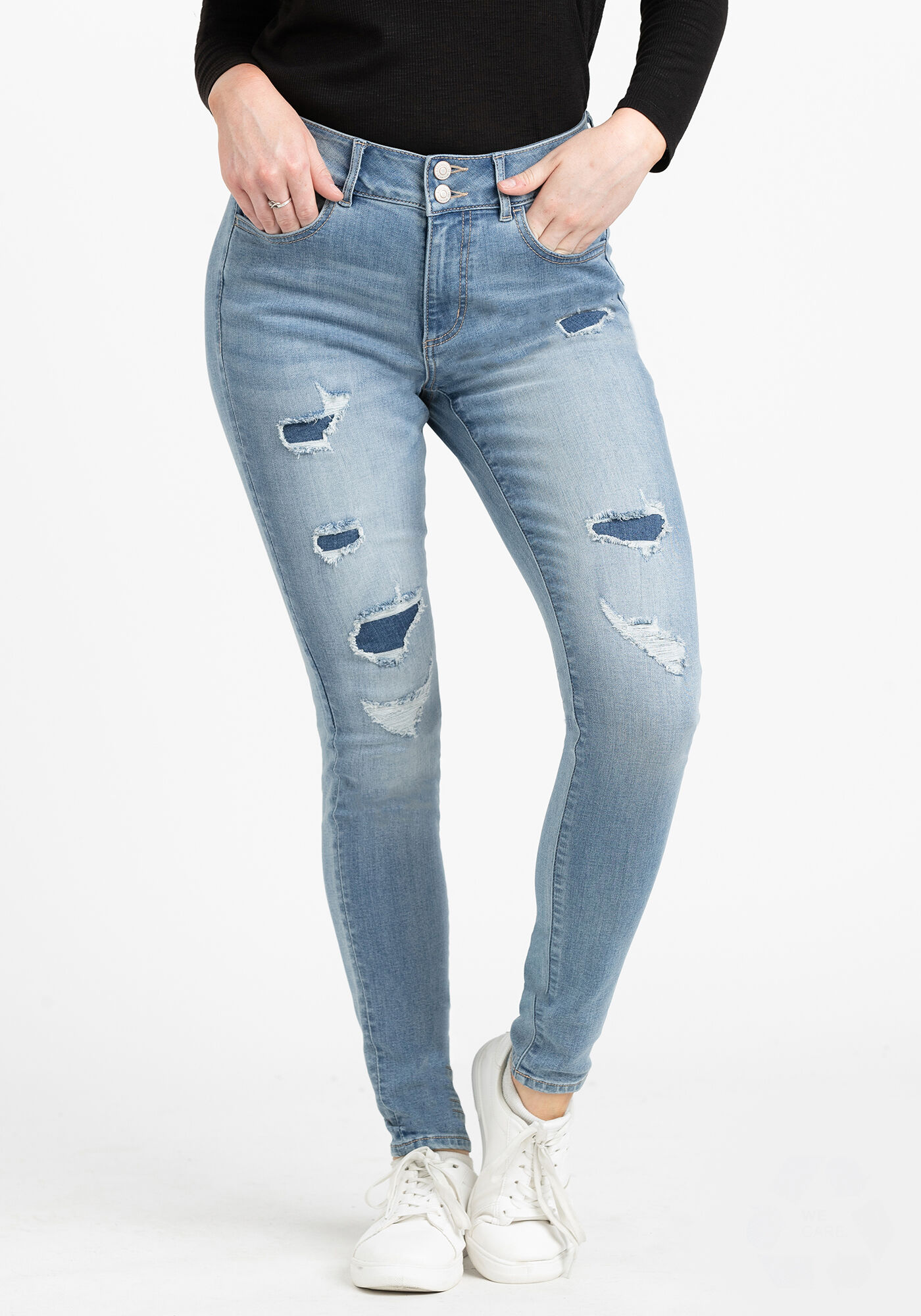 Women's 2 Button Rip & Repair Skinny Jeans is rated