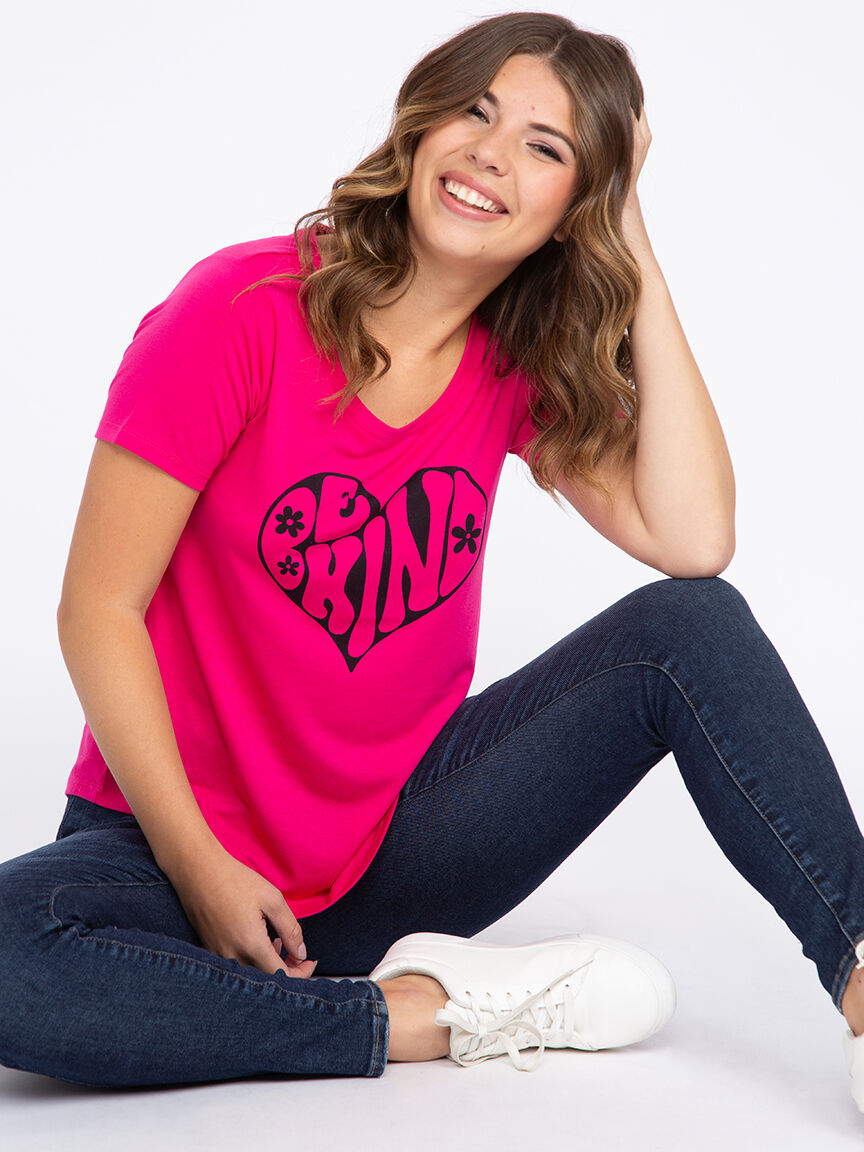 Rated 5 out of 5 by from Nice I love this top! The colour is amazing! It’s nice to wear something so bright and cheerful! I also like the message! It’s so easy to just say something kind to someone, you never know what someone else is going through and just by saying you look nice, or I love that top on you could really change someone’s day!!