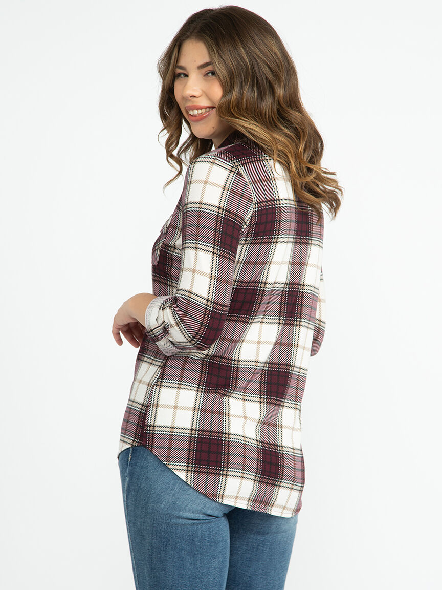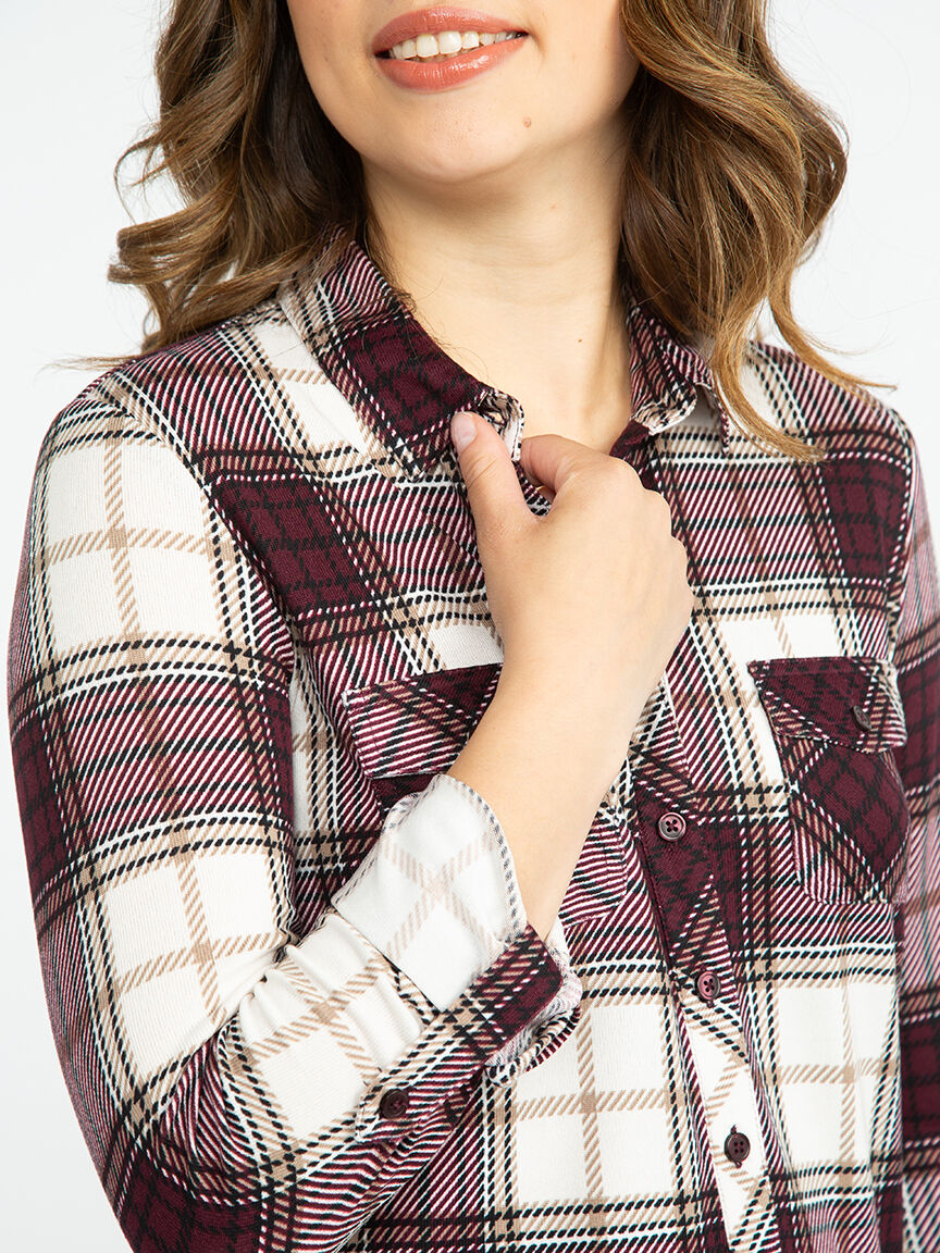Women's Brushed Knit Plaid Shirt Image 6
