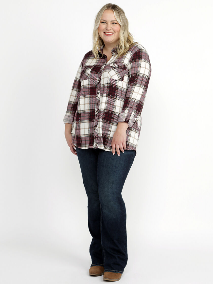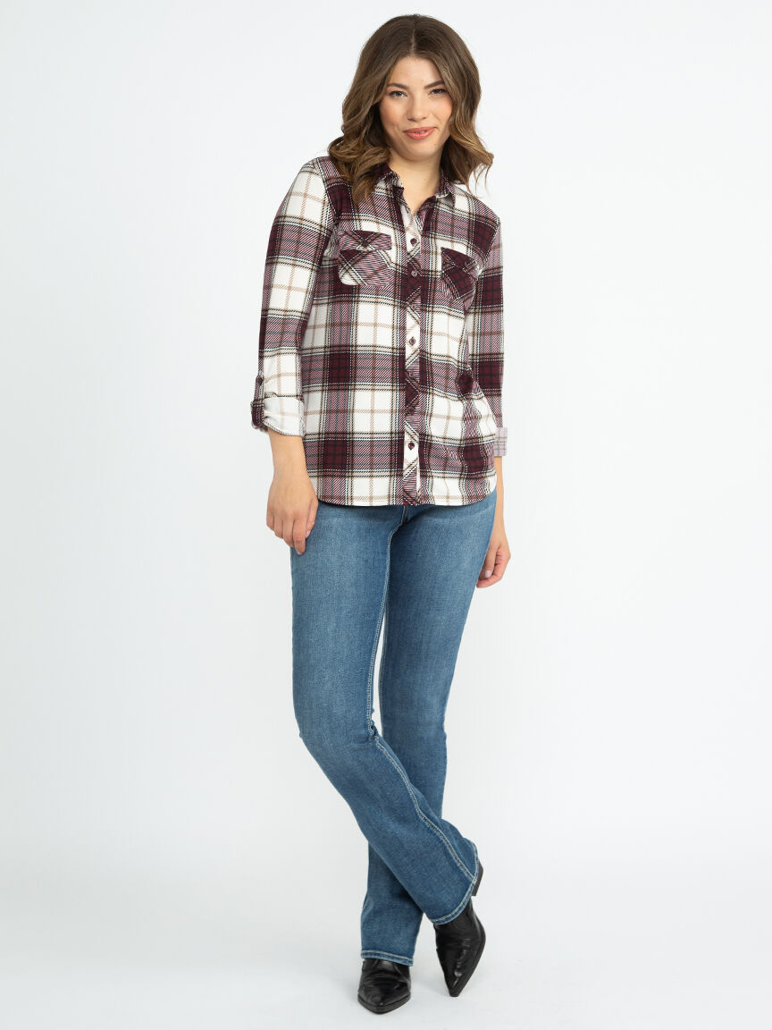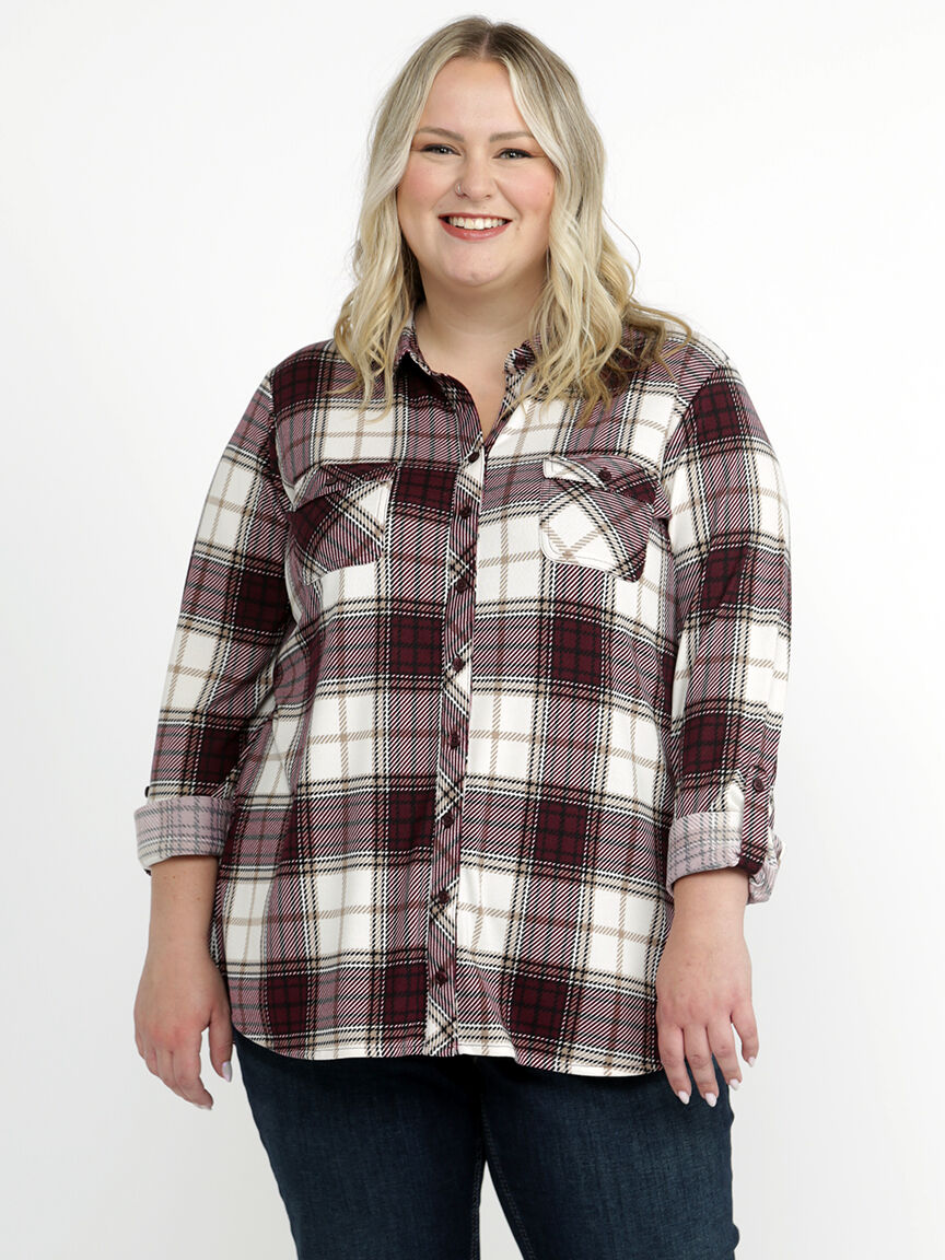 Women's Brushed Knit Plaid Shirt Image 1