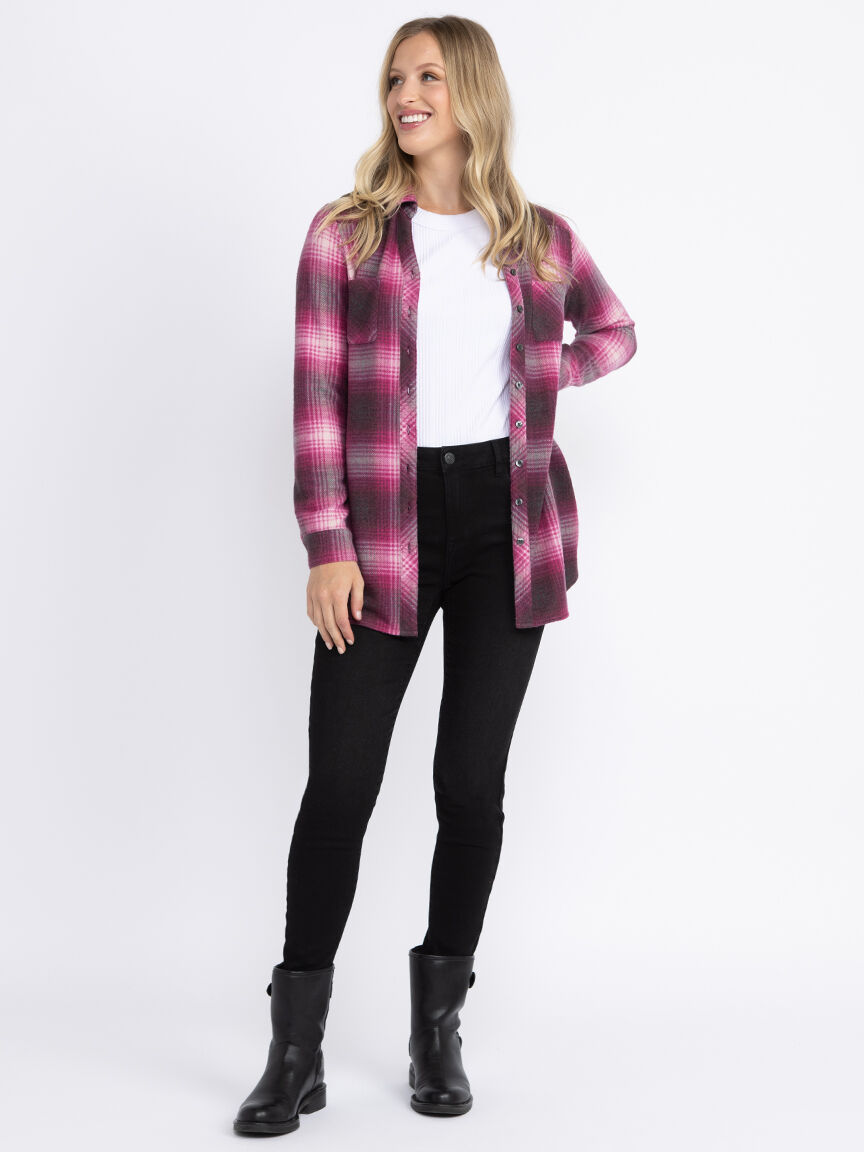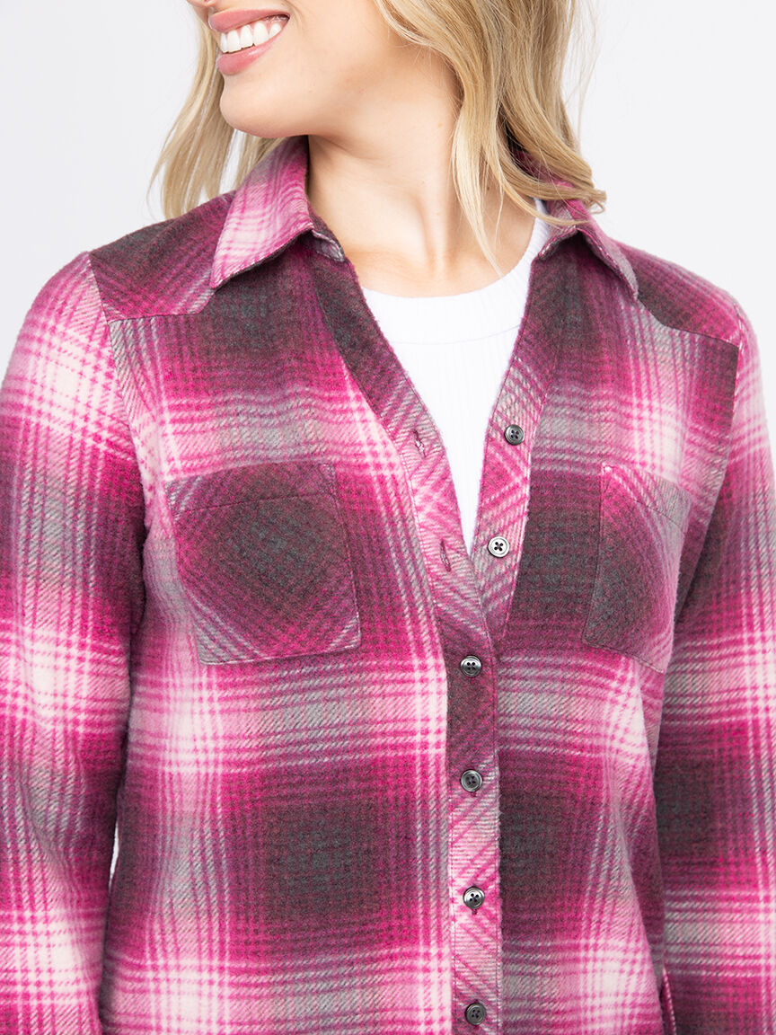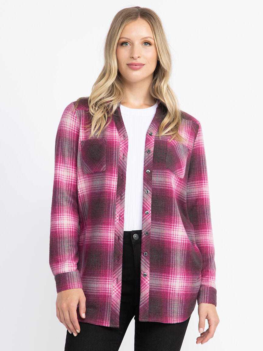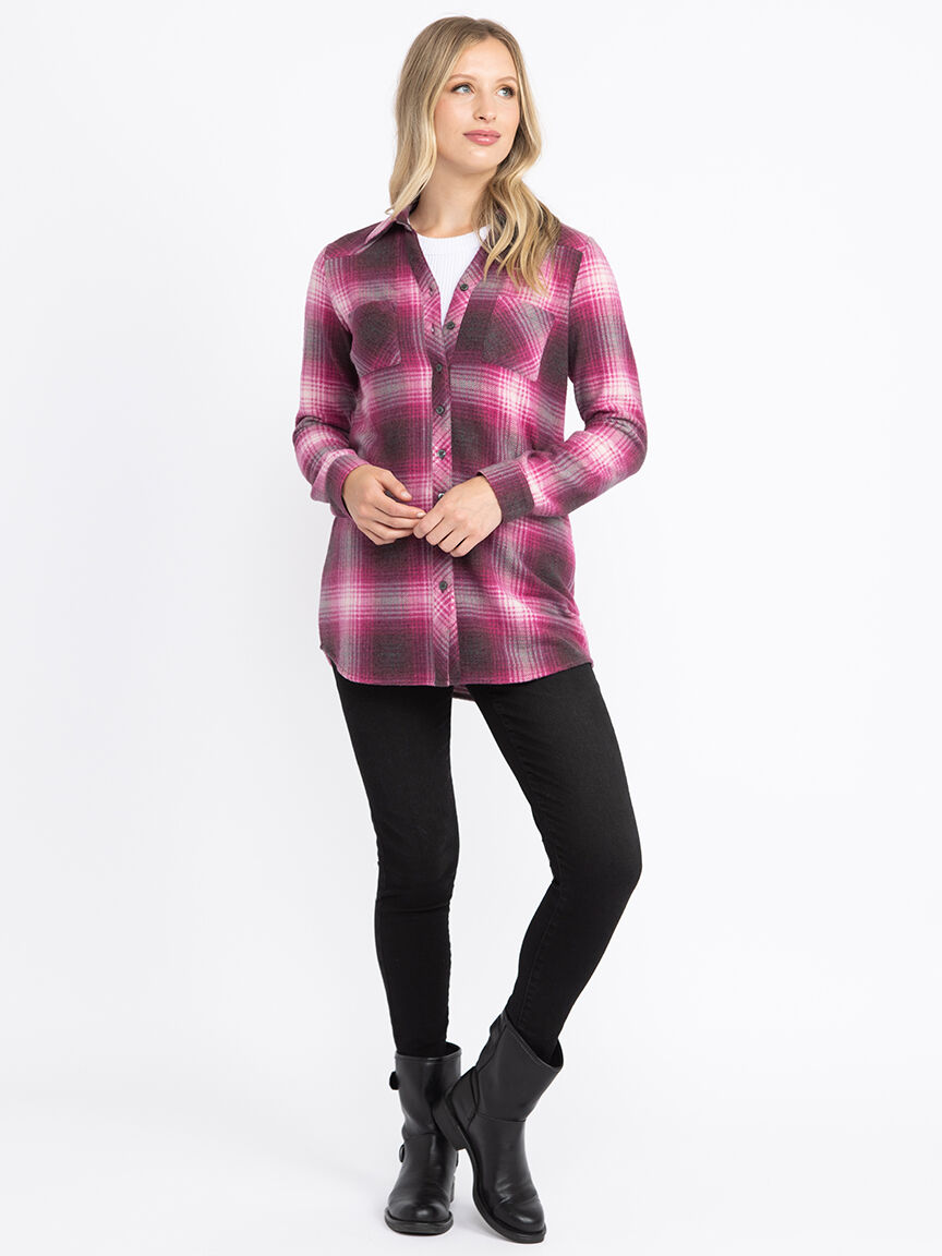 Rated 3 out of 5 by from Staticky Fleece...Not typical cotton plaid So bought this pink plaid online thinking it would be their typical plaid cotton or cotton-like blend shirts. However this one is actually a fleece material like PJ pants would be made of. I wasn't expecting that so a bit disappointed... I think it would have too much static cling to use as a daily shirt. It is too bad because the colour is quite pretty and vibrant.
