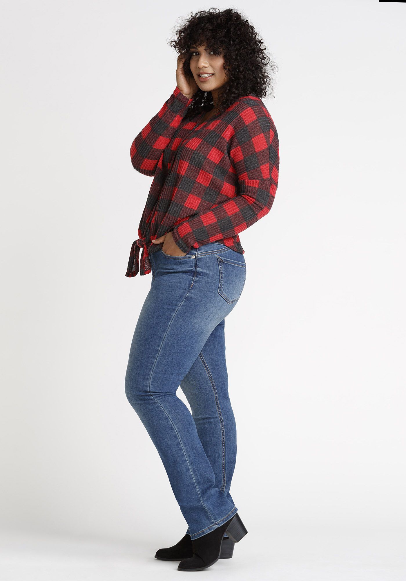 Women's Buffalo Plaid Tie Front Top Image 3