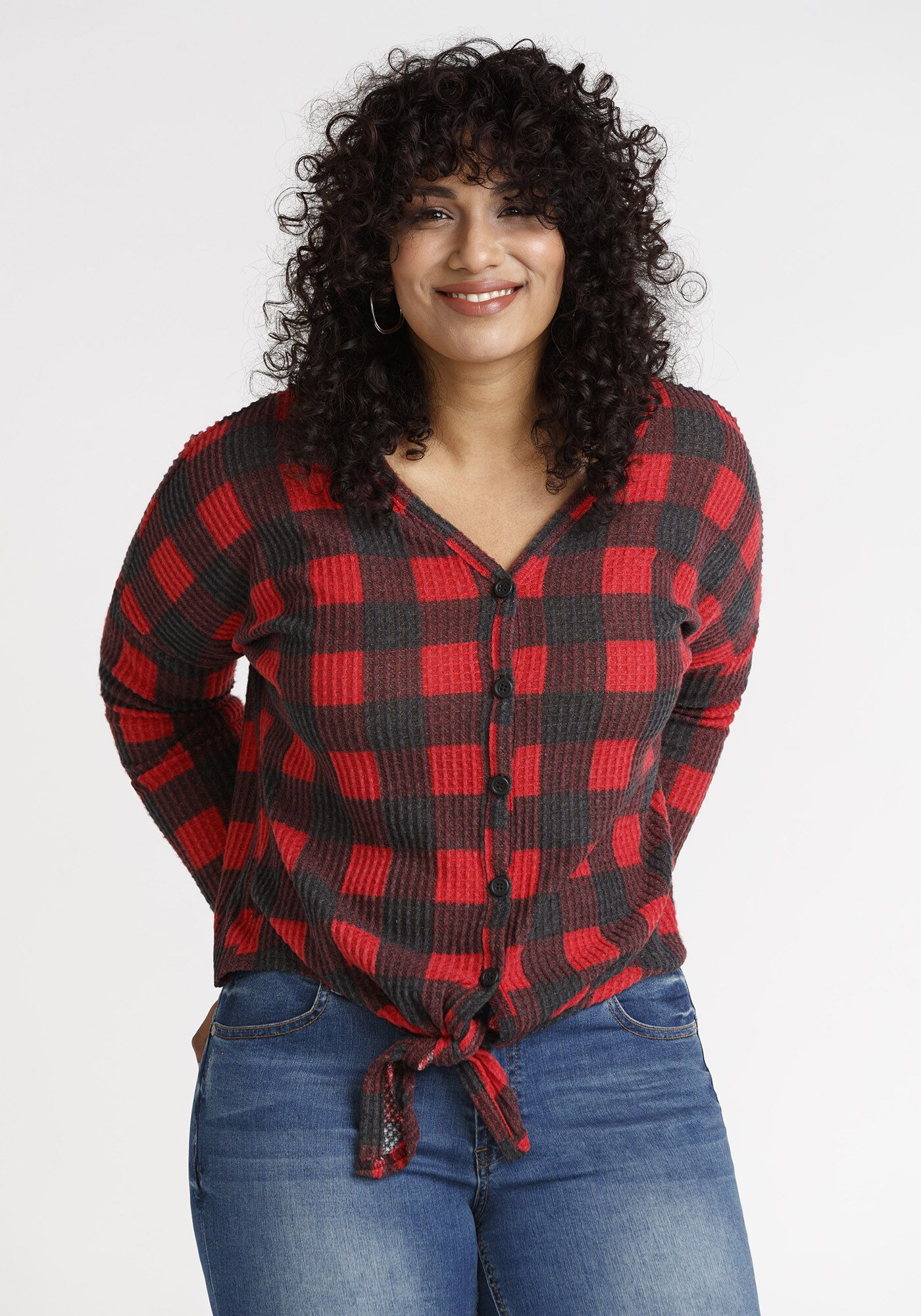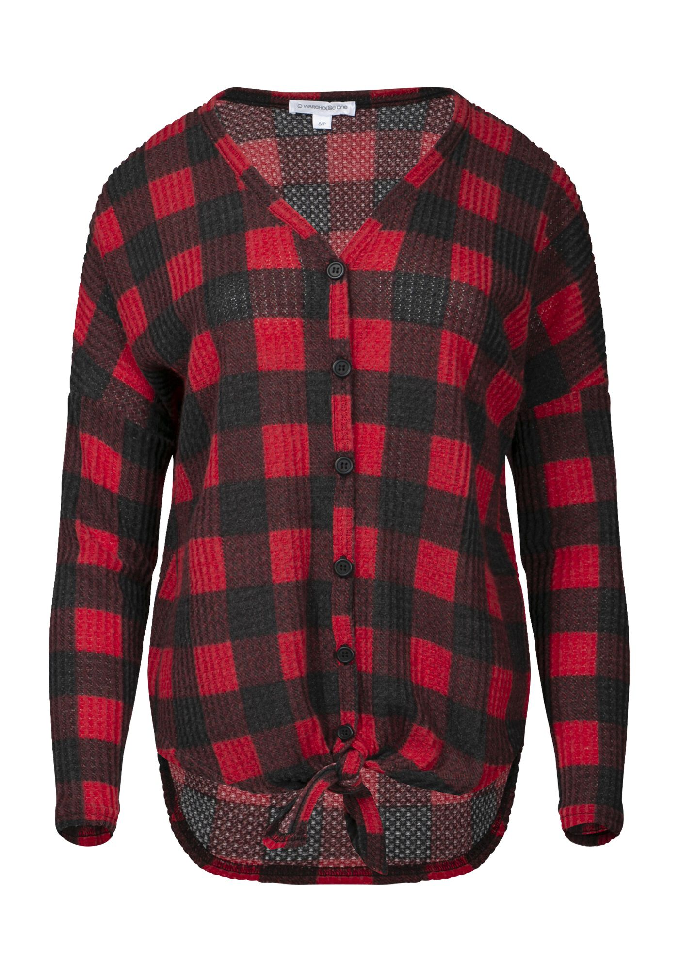 Women's Buffalo Plaid Tie Front Top Image 1