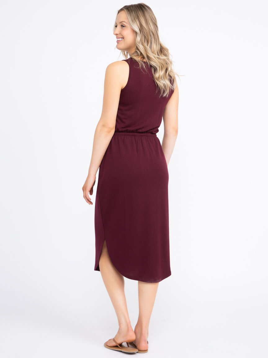 Rated 5 out of 5 by from Great style I have every color dress that has been available in this style. When this color came in, i scooped it up quickly. Its comfortable, the length is appropriate for work, the burgandy color is gorgeous and it pairs great with a denim jacket and cute strappy heels.