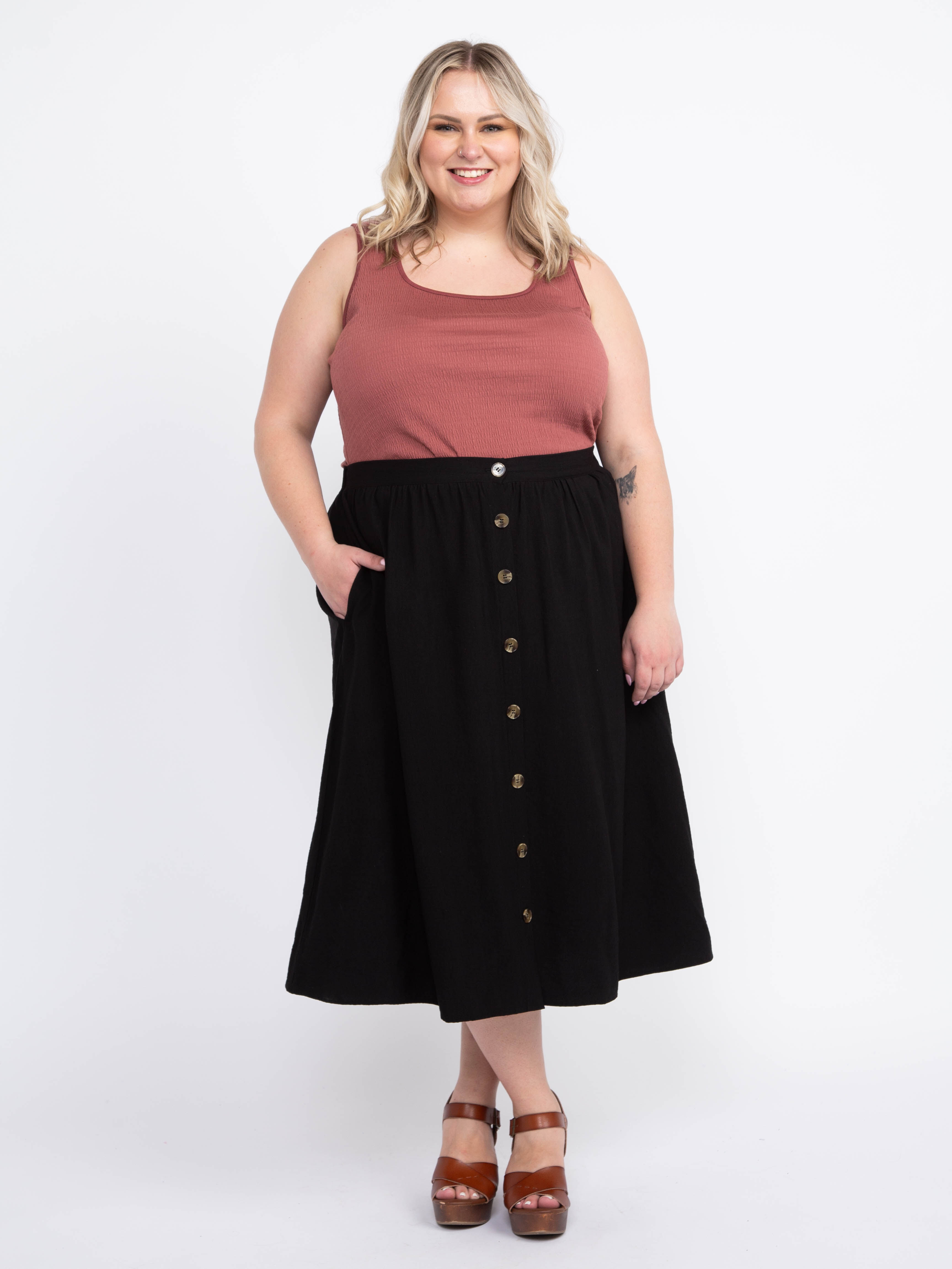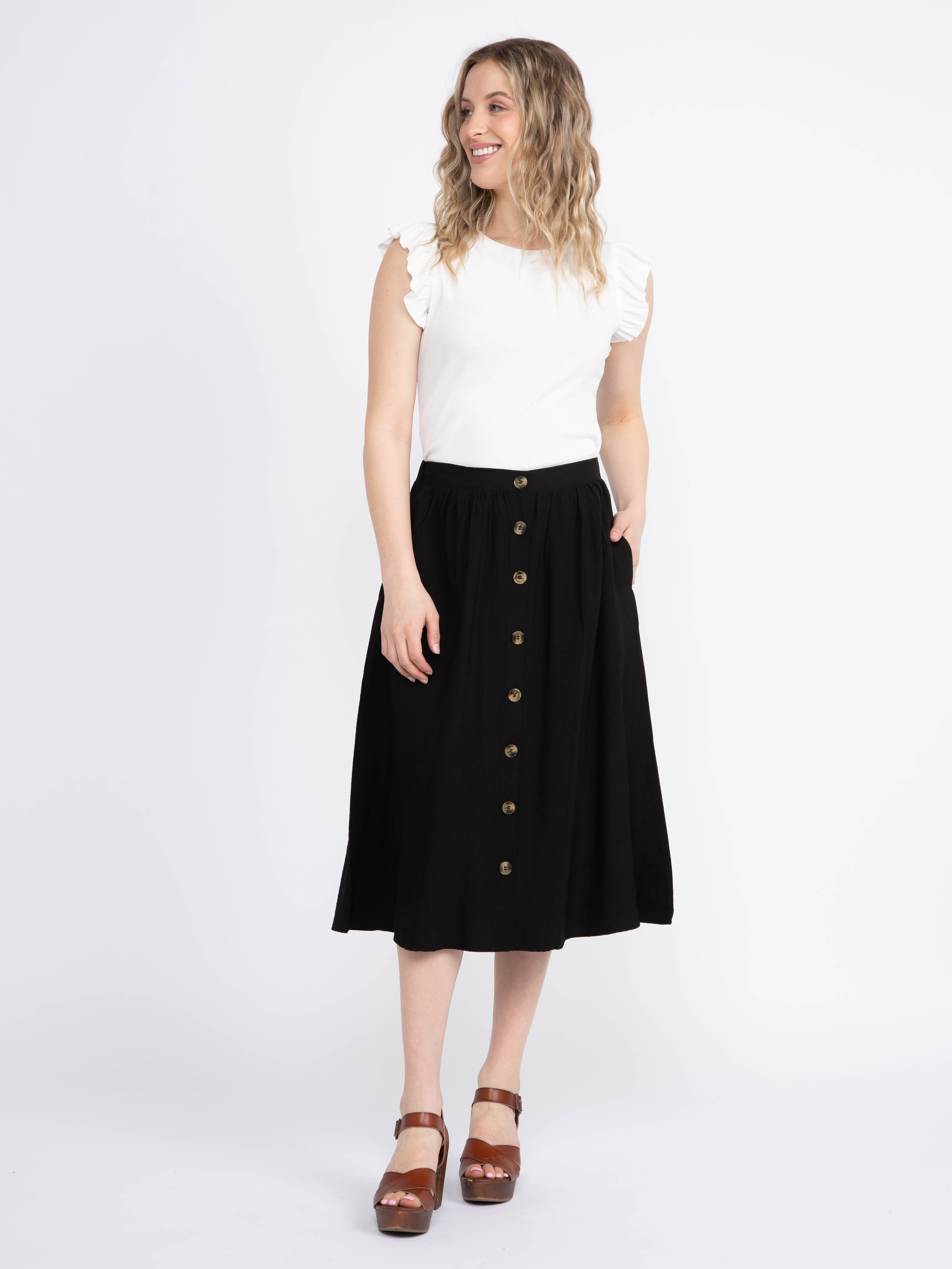 Women's Button Front Midi Skirt