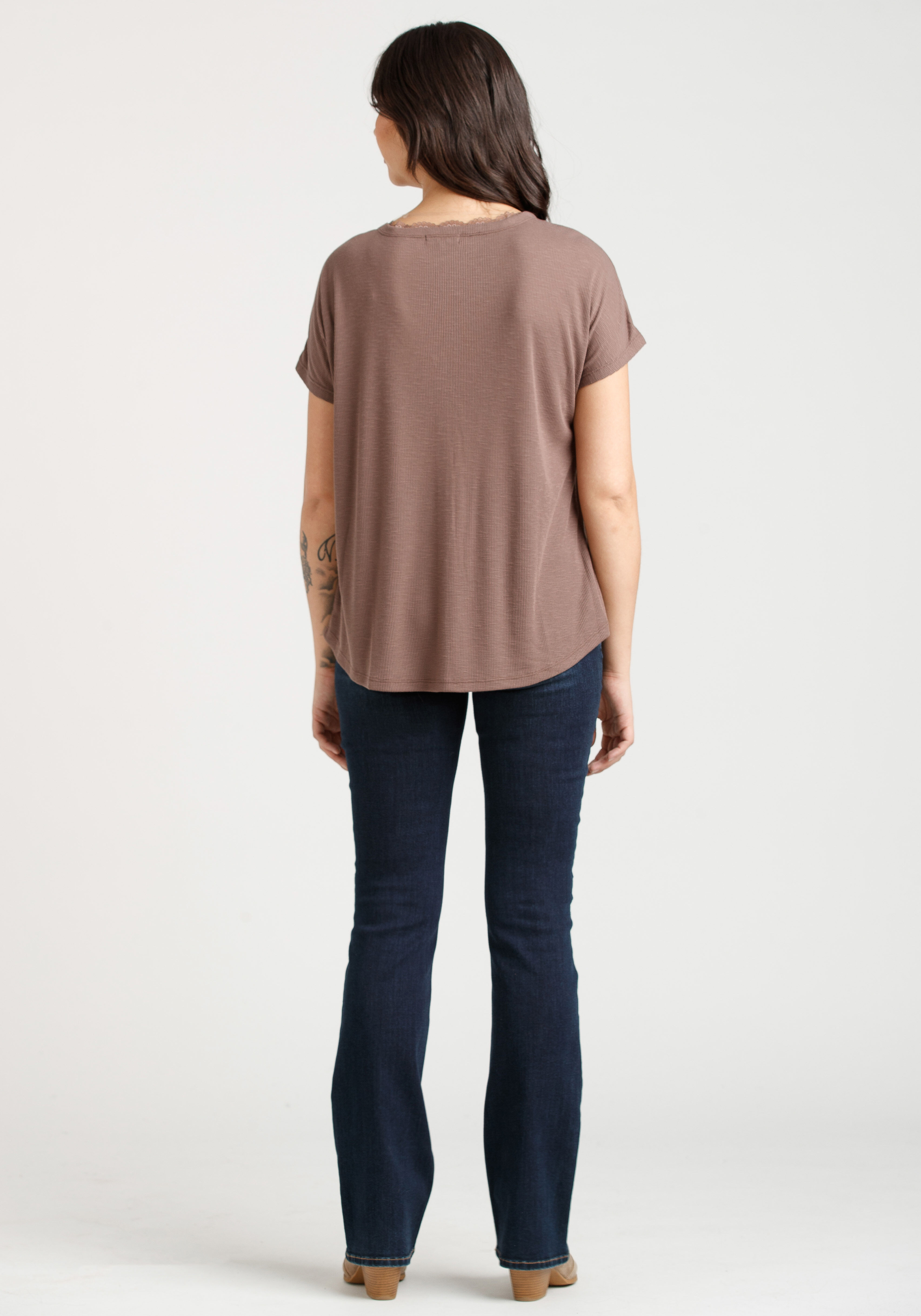 Rated 5 out of 5 by from Fits big I bought this top online. I ordered my usual xs but it fits like a medium or large even. I understand it was not suppose to be tight, but it is a little too big for my liking. But all in all it is still a very nice top. I ordered the brown. Love the color amd the lace detail.