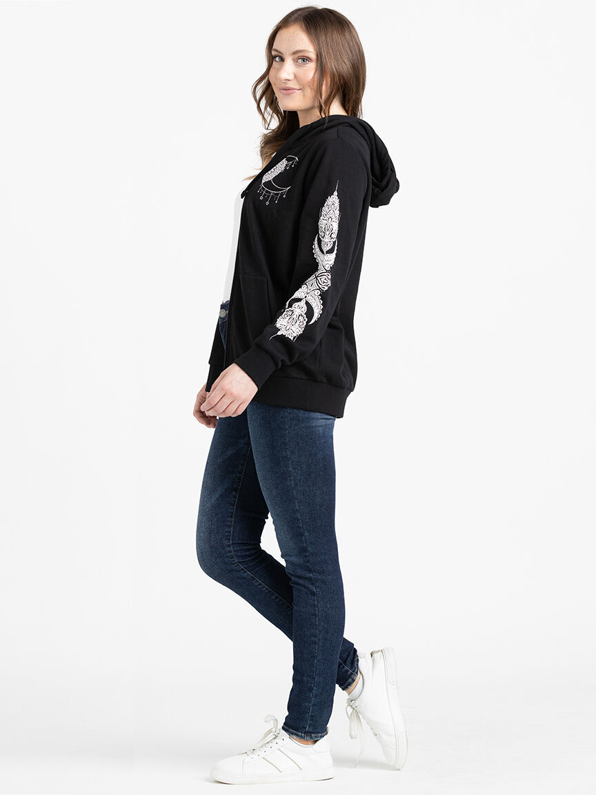 Rated 5 out of 5 by from Nice sweater/hoodie for fall Myself & my 9yr old got matching hoodies ; really enjoy the celestial moon 🌙 detailing.