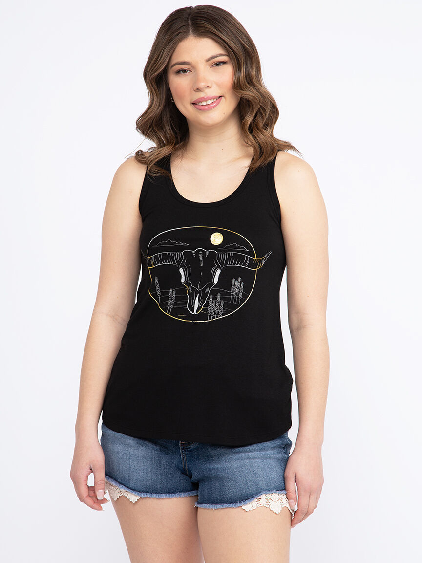 Women's Cow Skull Scoop Neck Tank Image 1