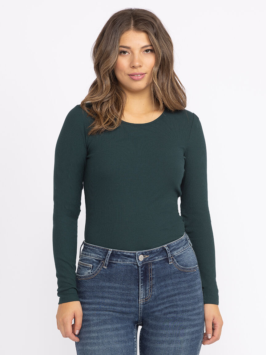 Women's Crew Neck Rib Long Sleeve Tee Image 2