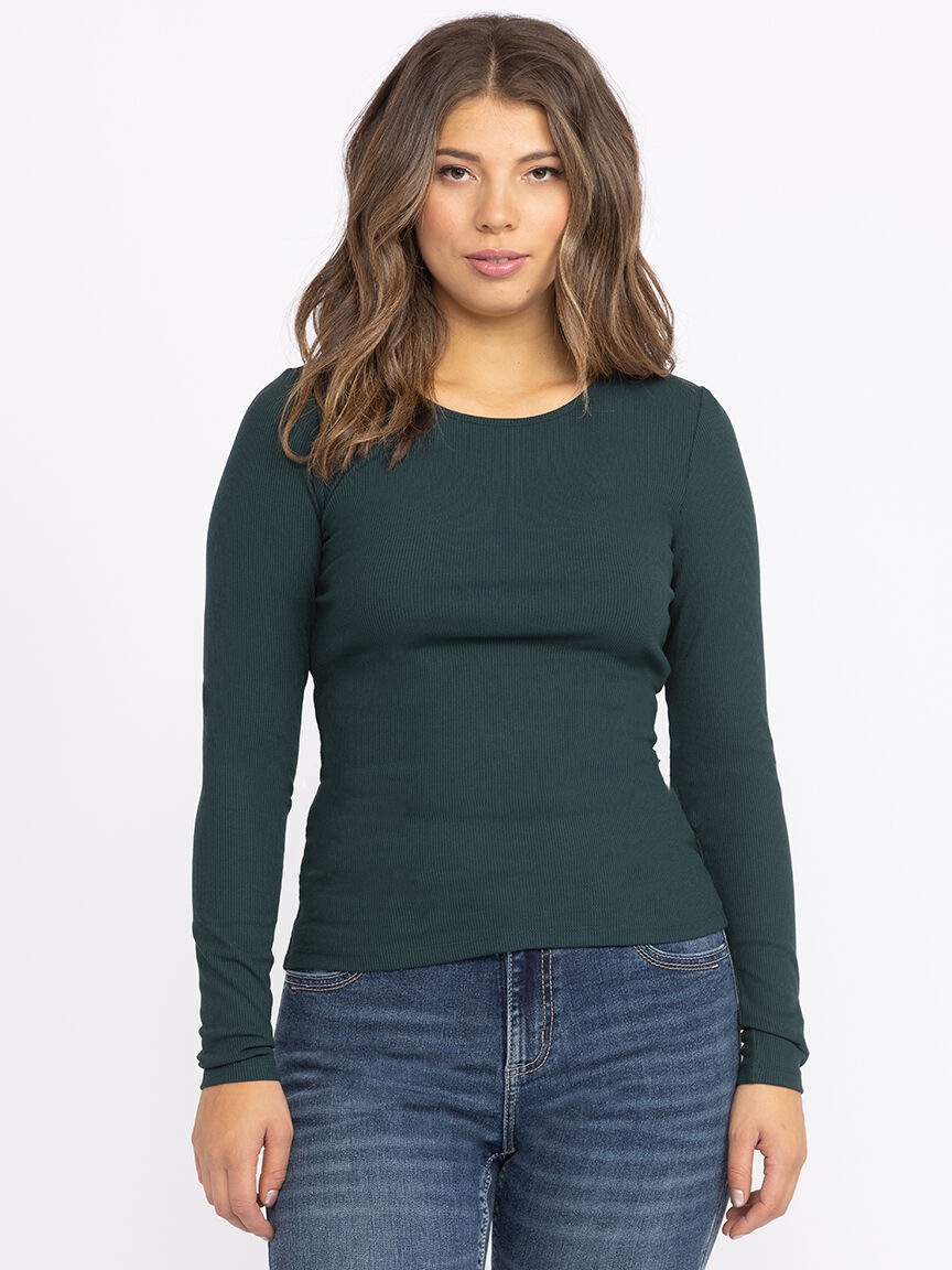 Women's Crew Neck Rib Long Sleeve Tee Image 1