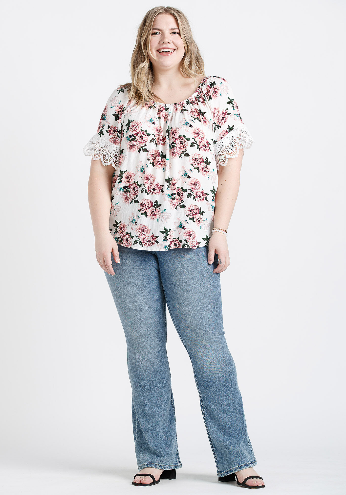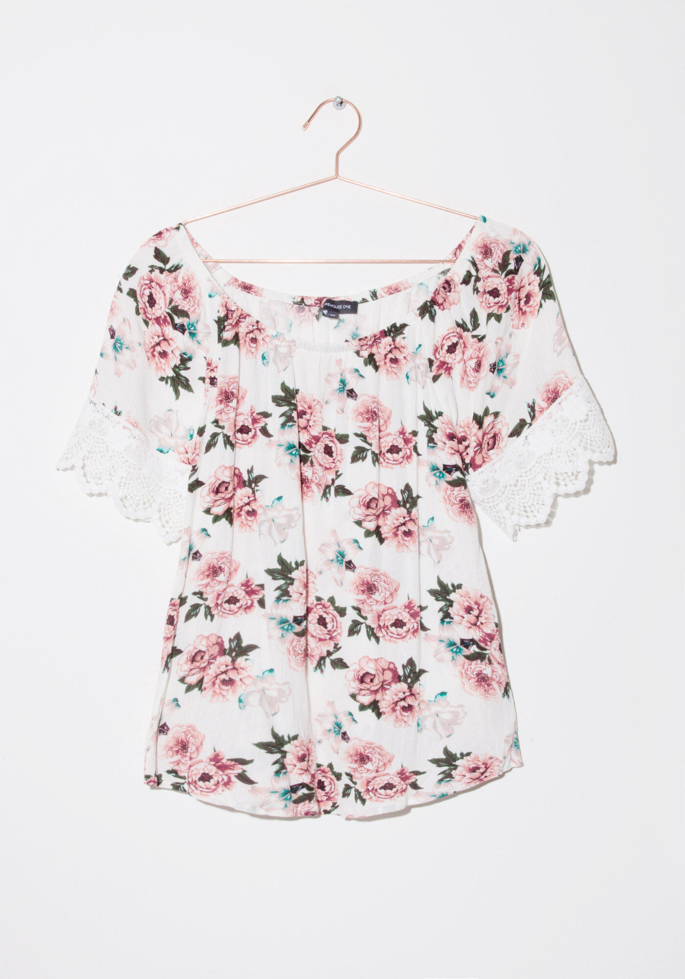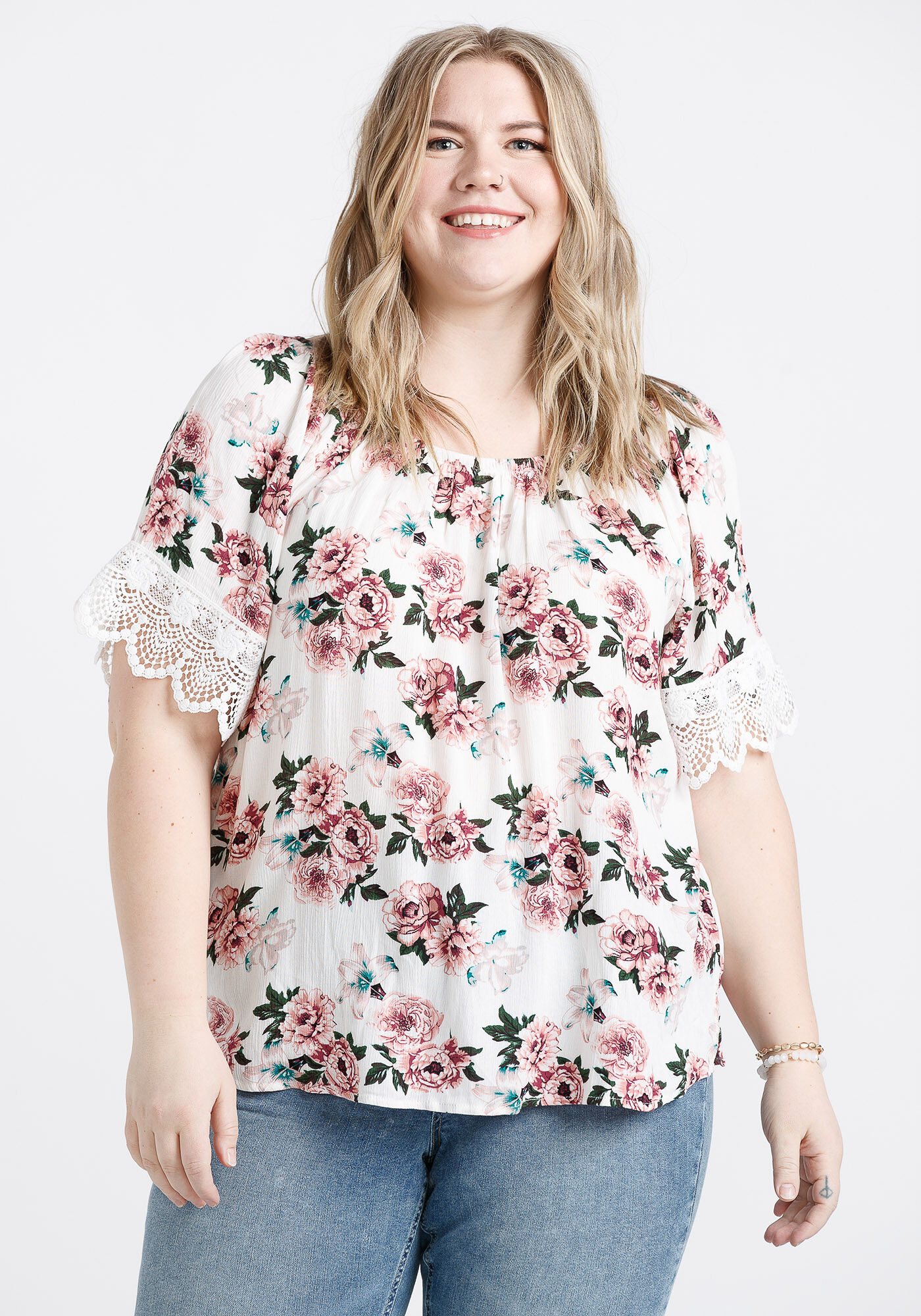 Women's Crochet Trim Peasant Top Image 1