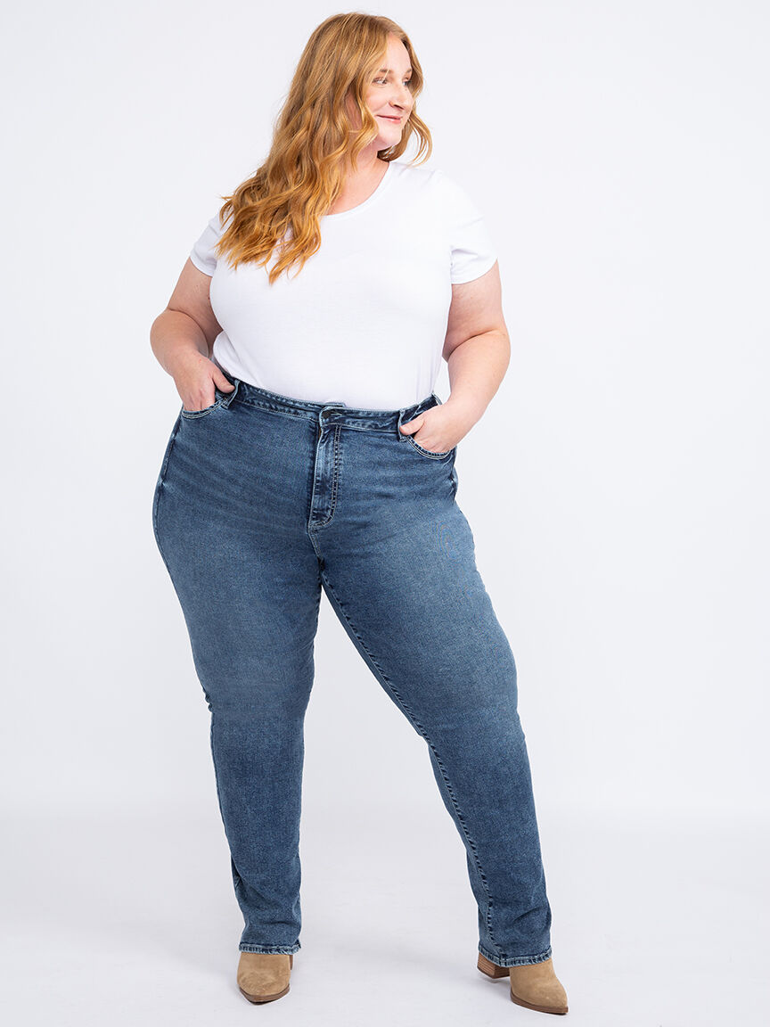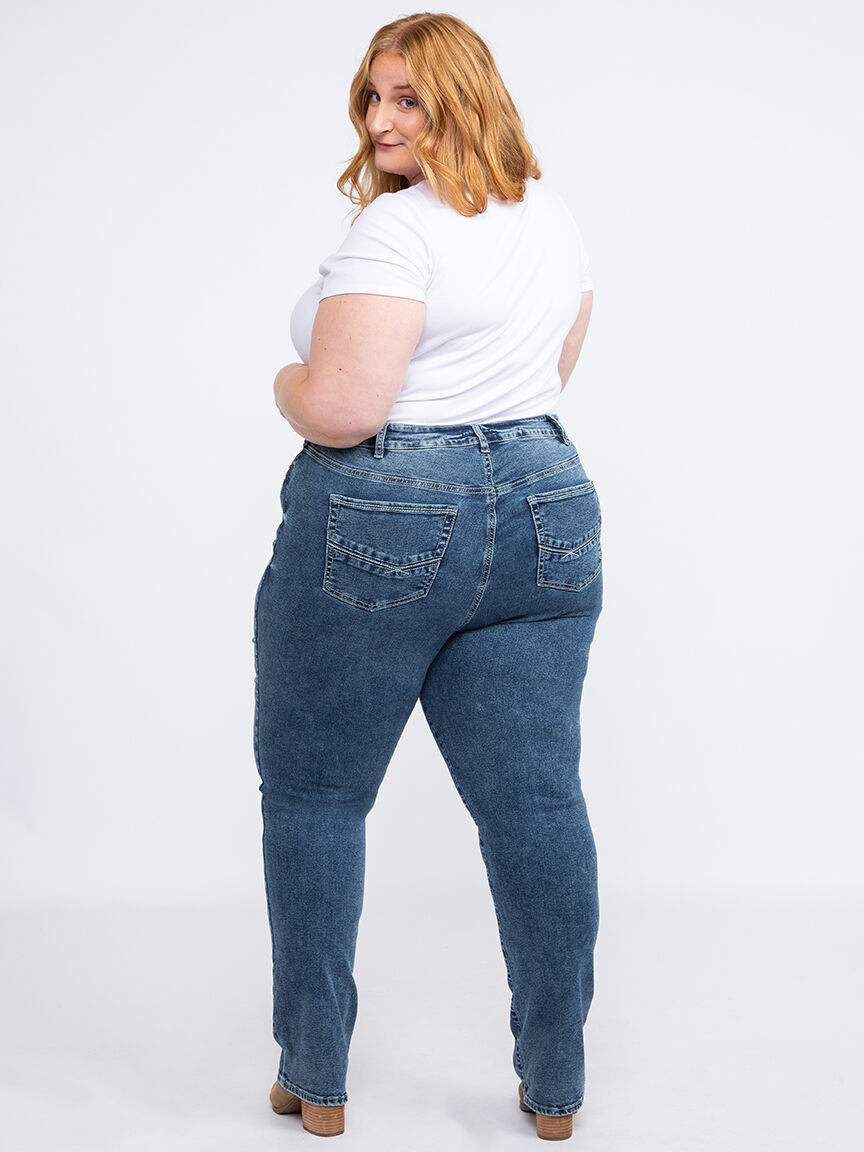 - A slightly higher rise for less gaping at the waist. Room in hip and thigh