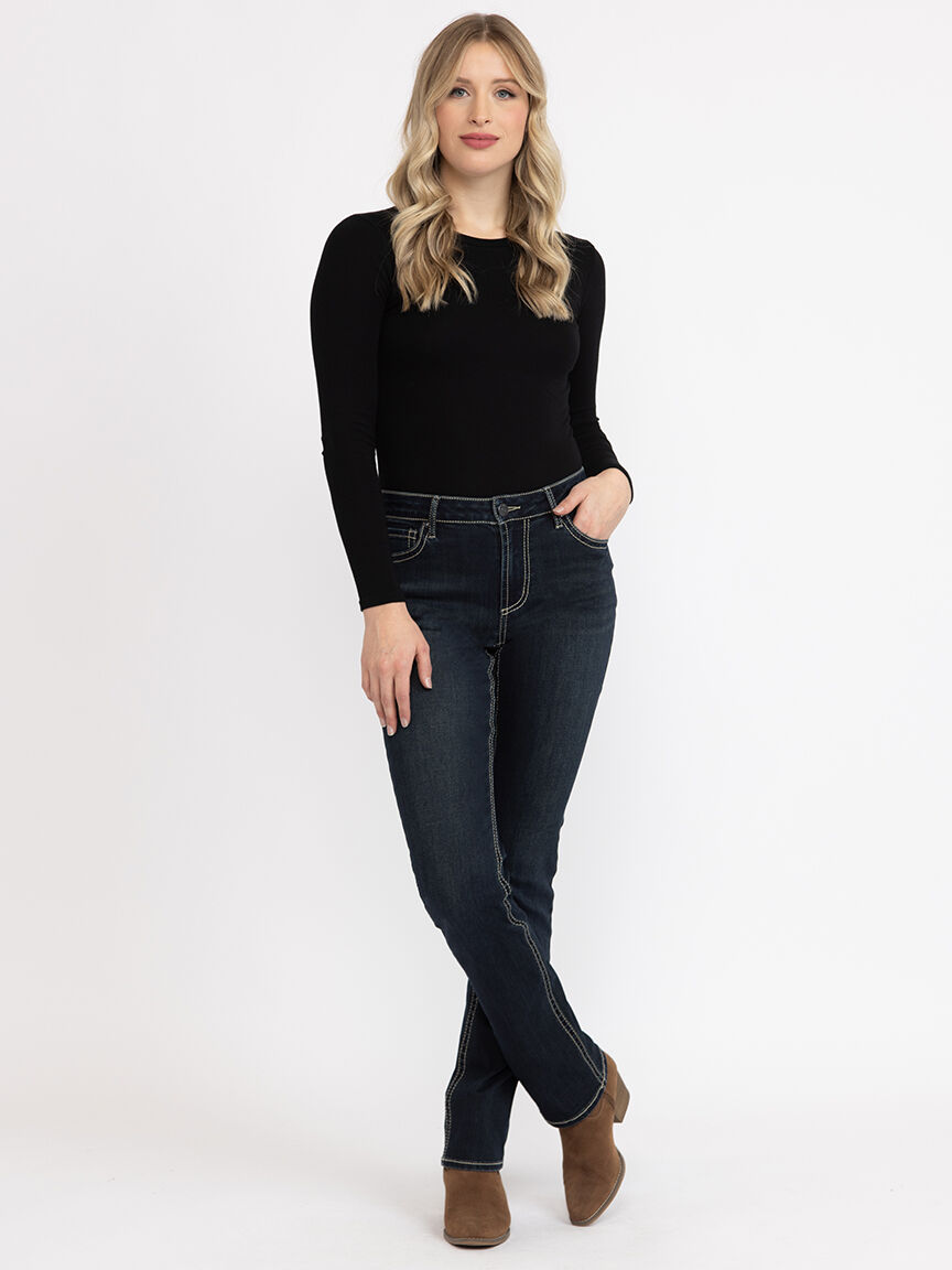 Women's Dark Wash Flap Pocket Straight Jeans is rated