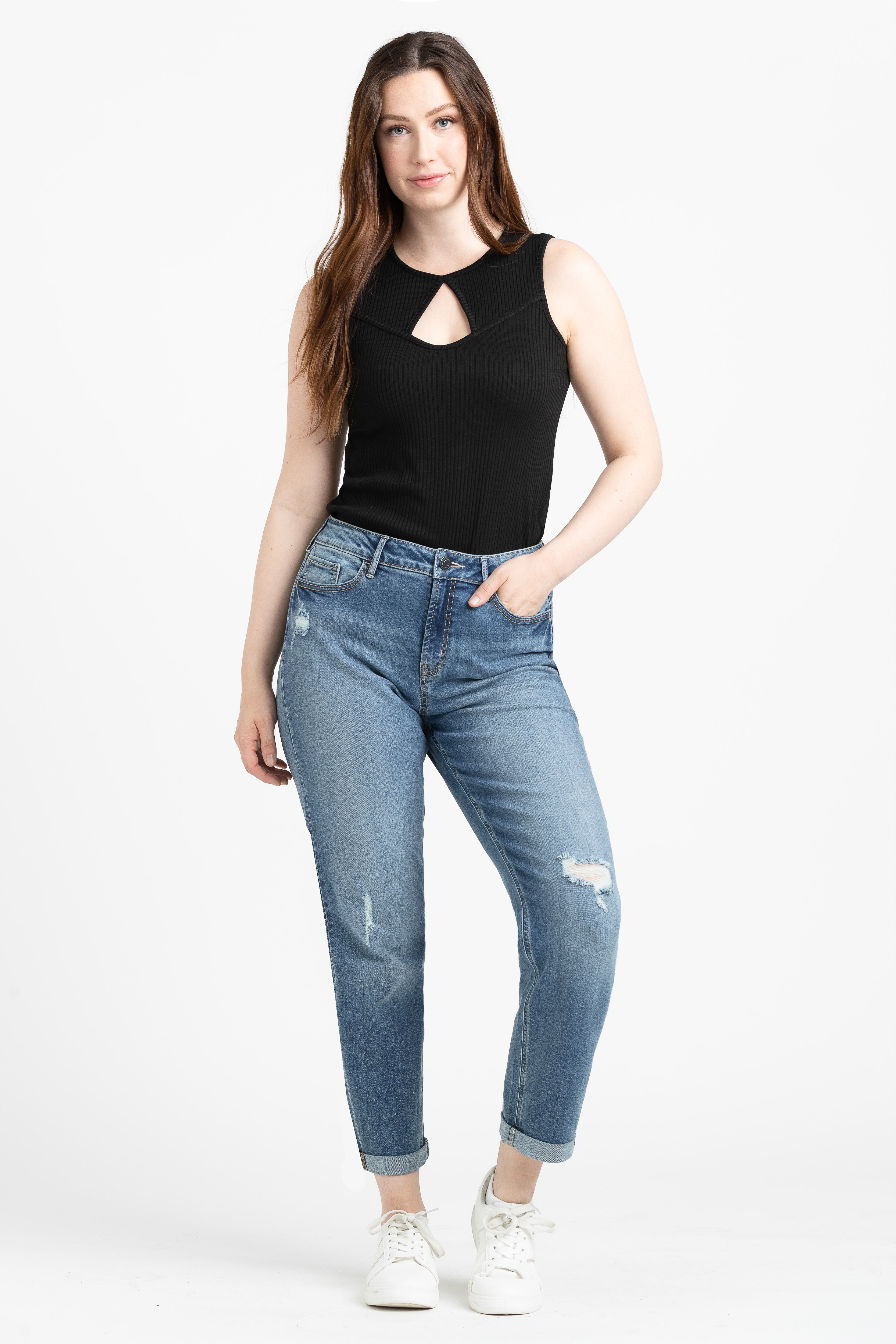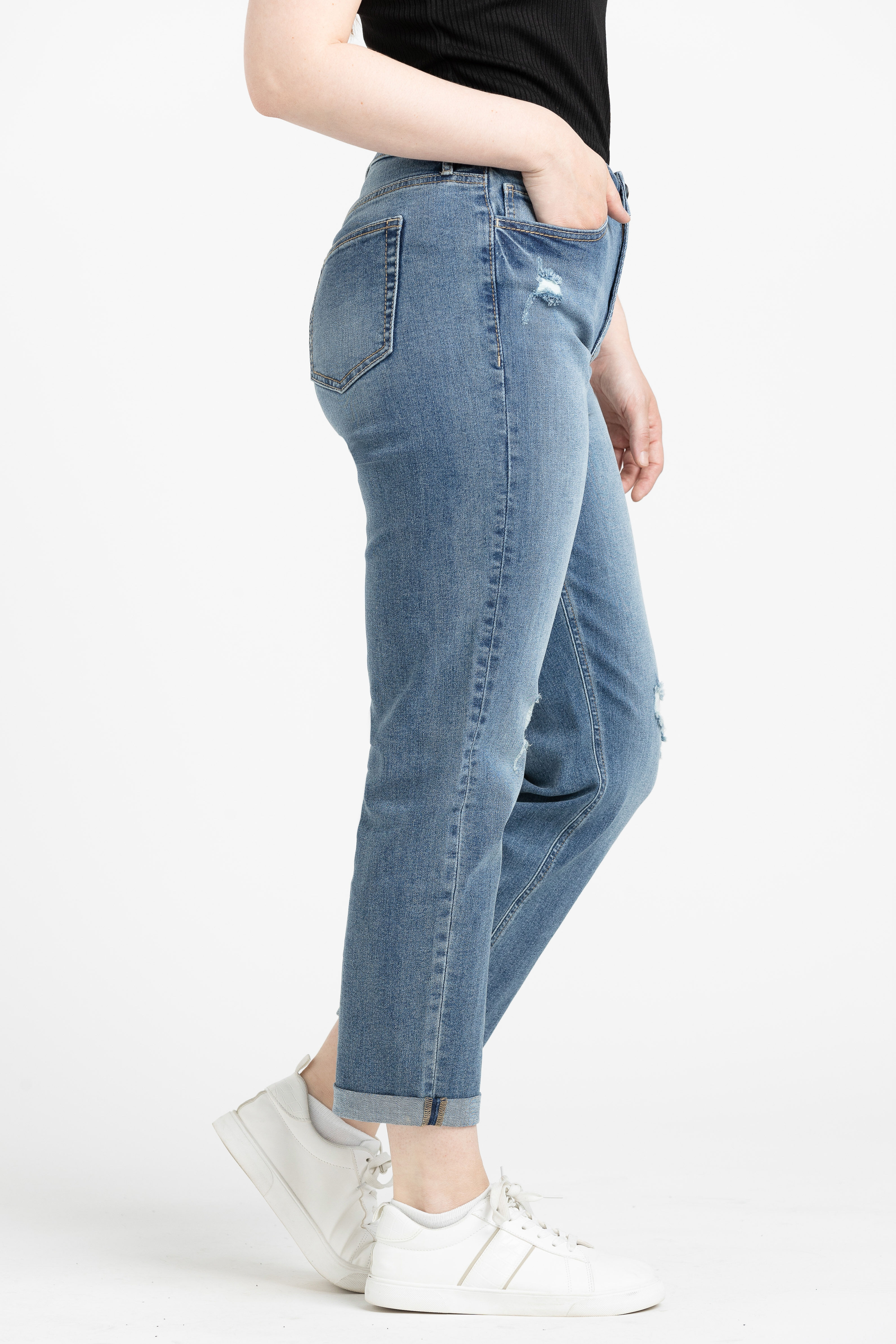 Women's Destroyed Cuffed Girlfriend Jeans Image 2