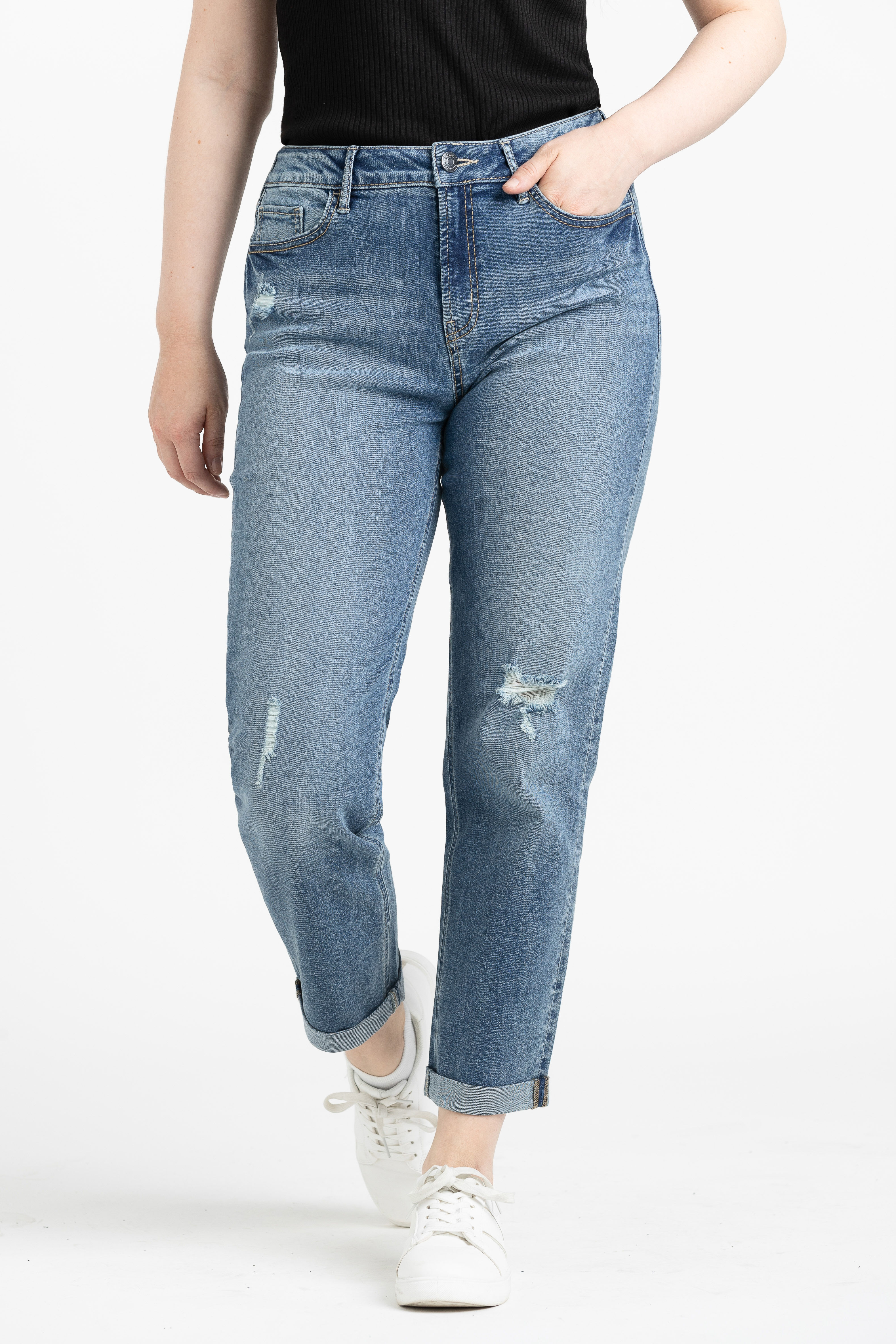 Women's Destroyed Cuffed Girlfriend Jeans Image 1