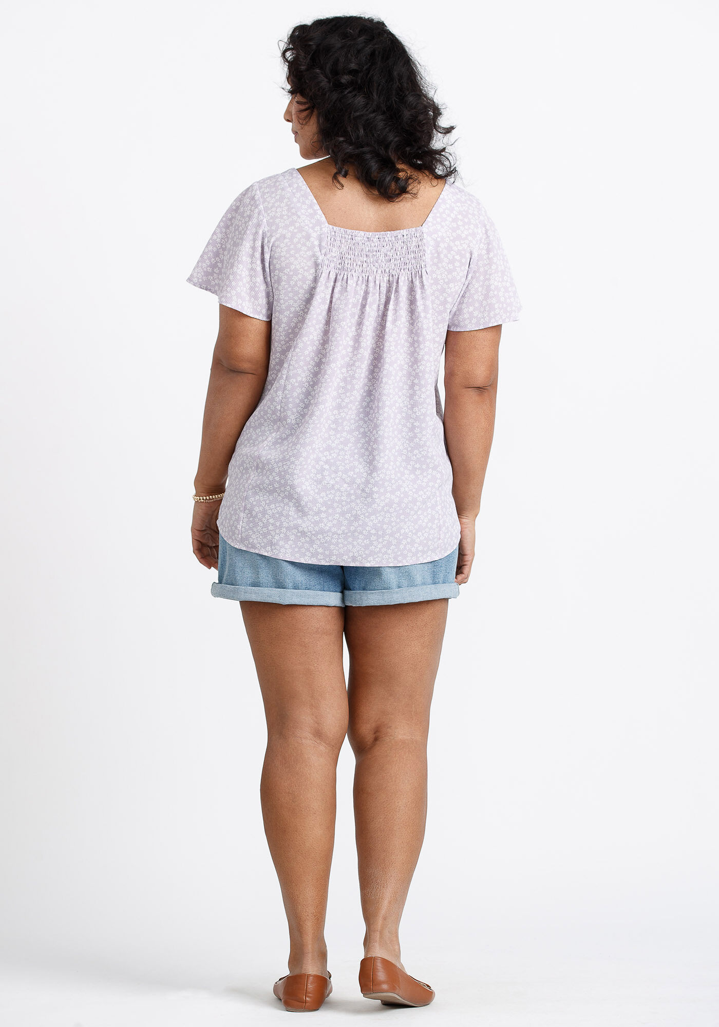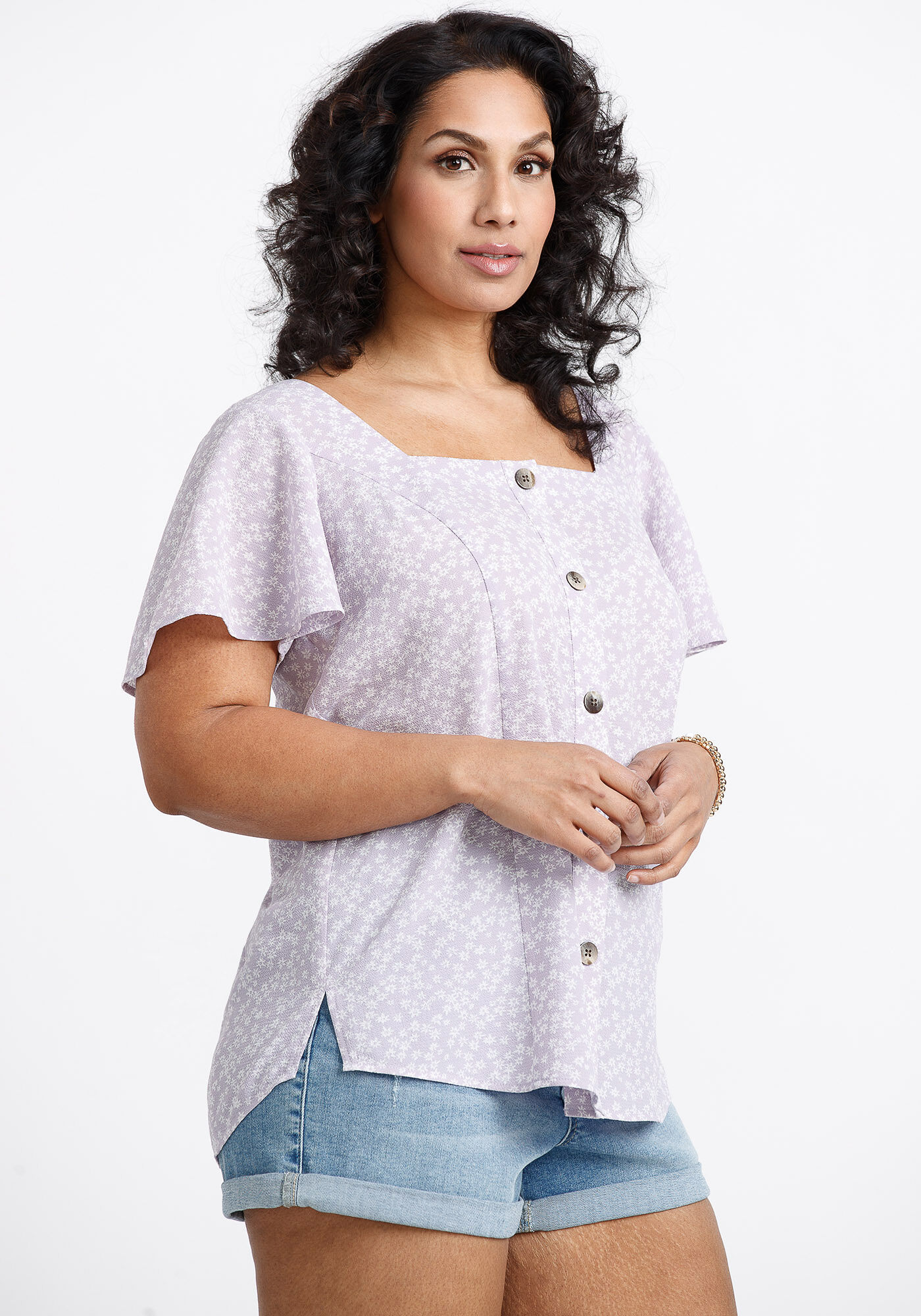 Rated 5 out of 5 by from Flutter sleeve top This top is comfortable! And cool! The neckline was big for me so I made a tuck on each side of neckline and it firs perfectly!