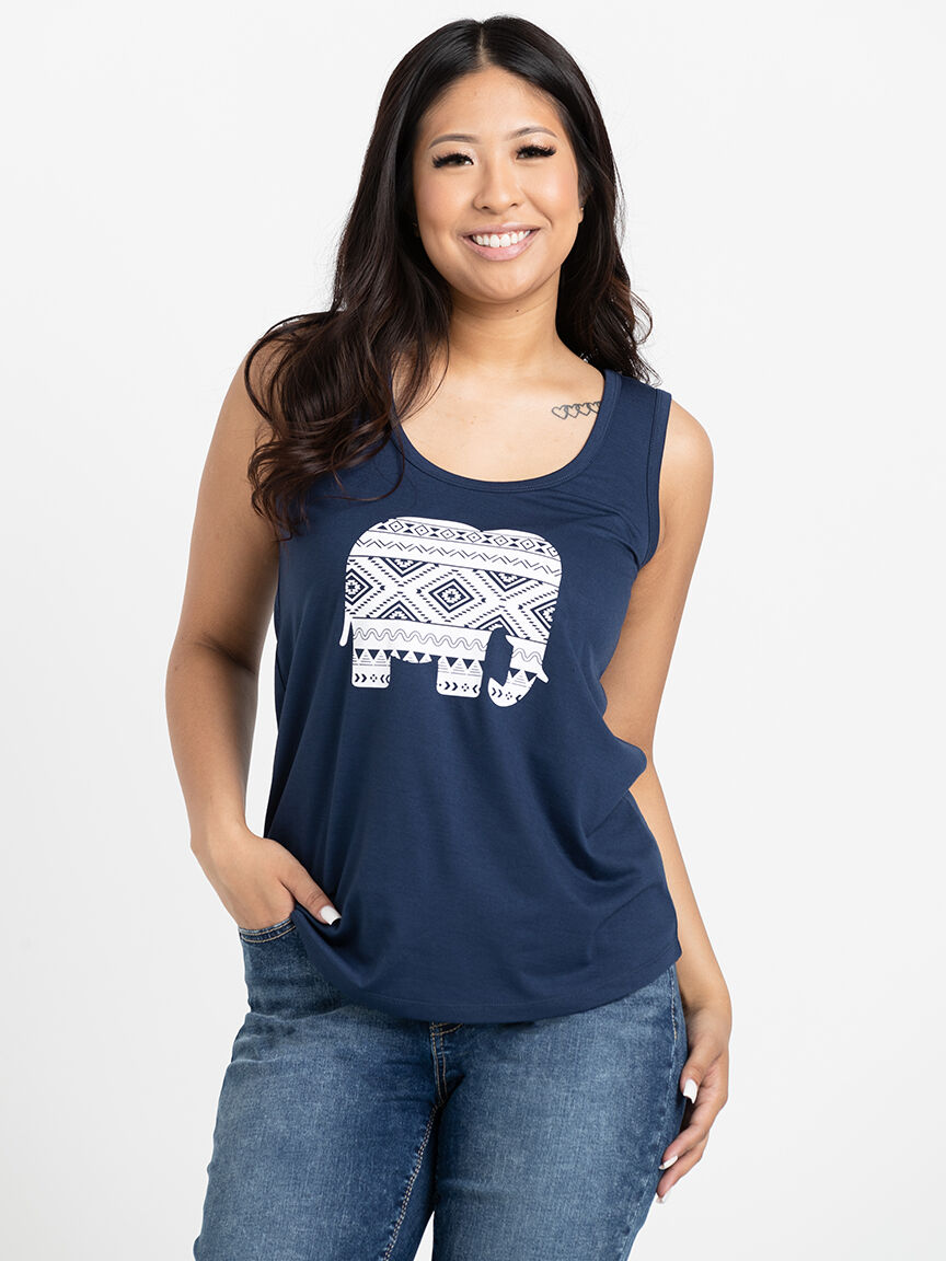 Women's Elephant Scoop Neck Tank Image 1