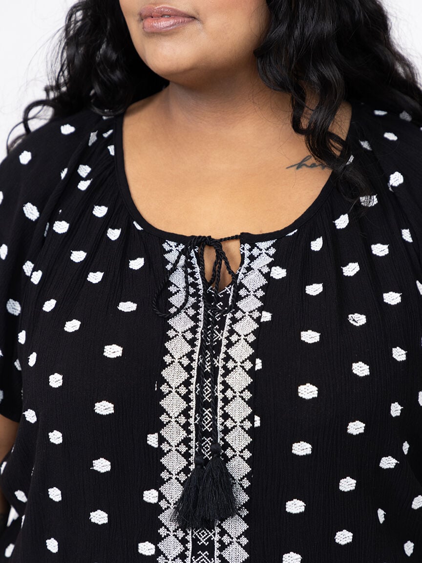 Women's Embroidered Keyhole Top Image 5