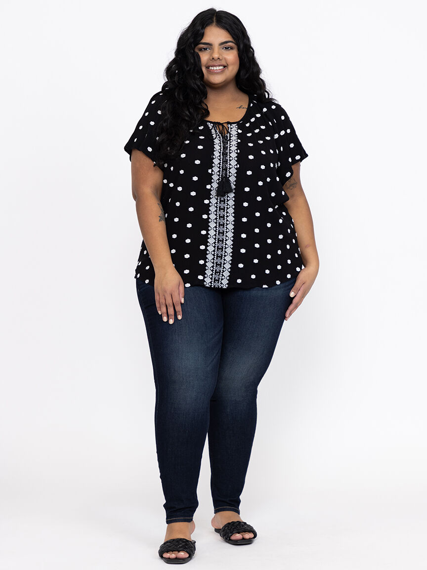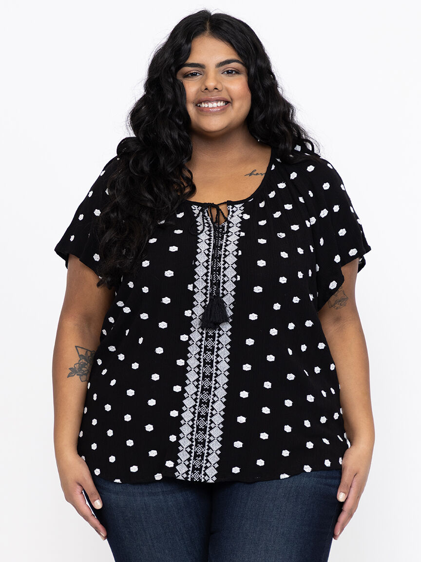Women's Embroidered Keyhole Top Image 1