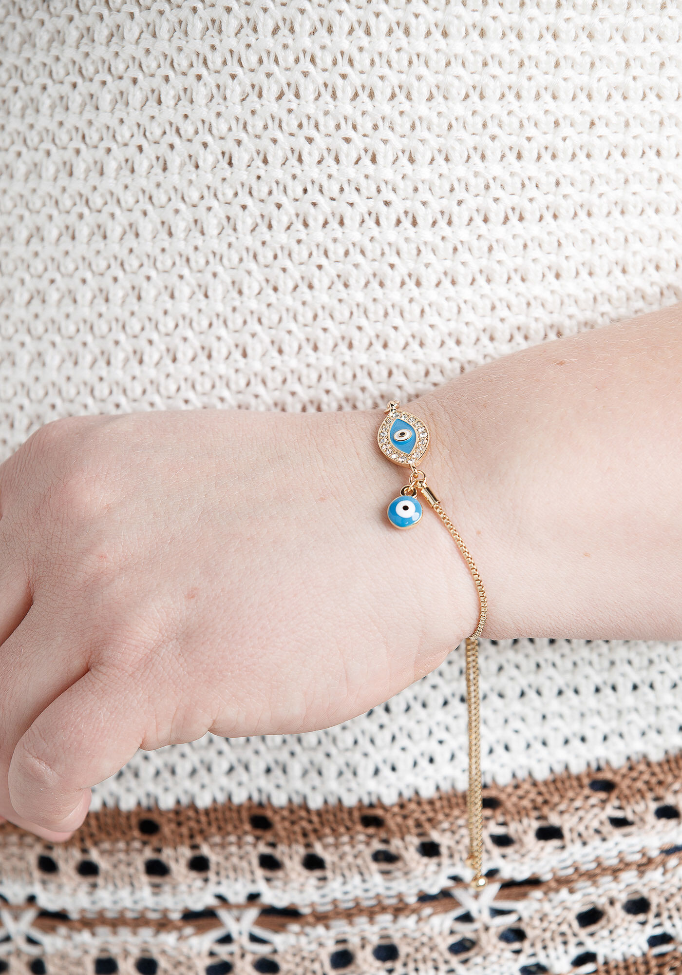 Women's Evil Eye Gold Bolo Bracelet Image 2