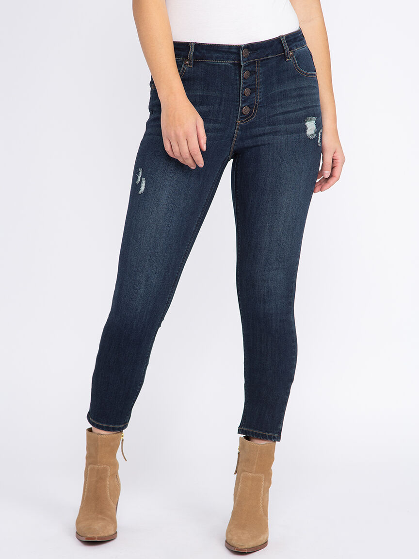 Women's Exposed Button Destroyed Ankle Skinny Jeans