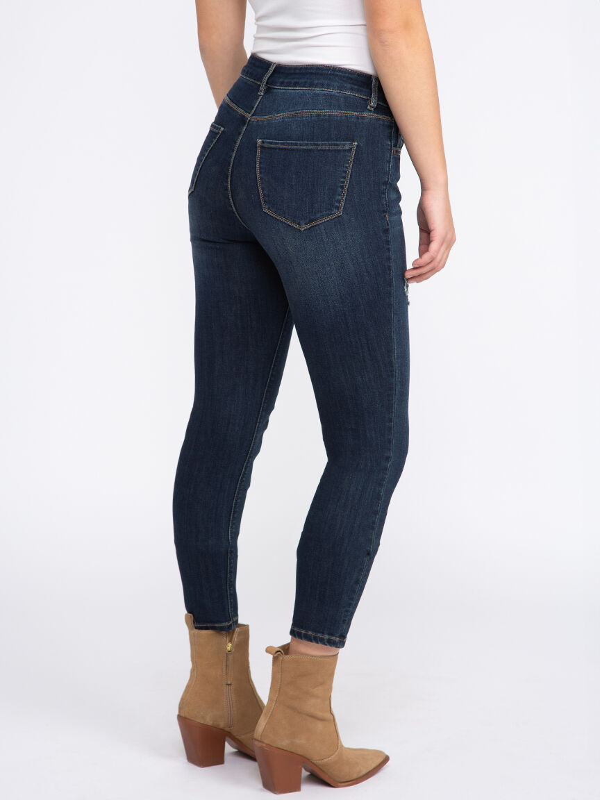 Women's Exposed Button Destroyed Ankle Skinny Jeans is rated