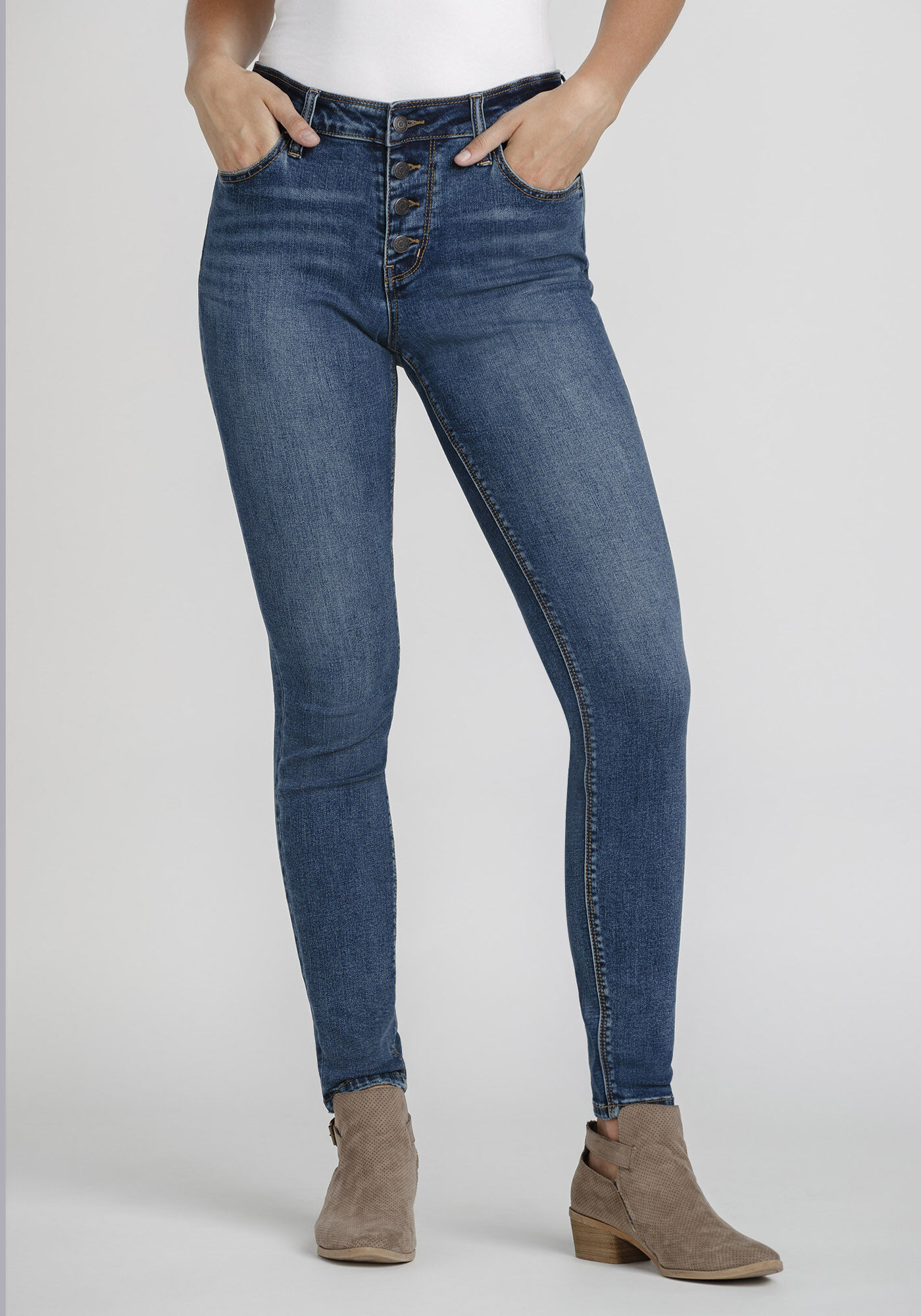 Women's Exposed Button Power Sculpt High Rise Skinny Jeans Image 1