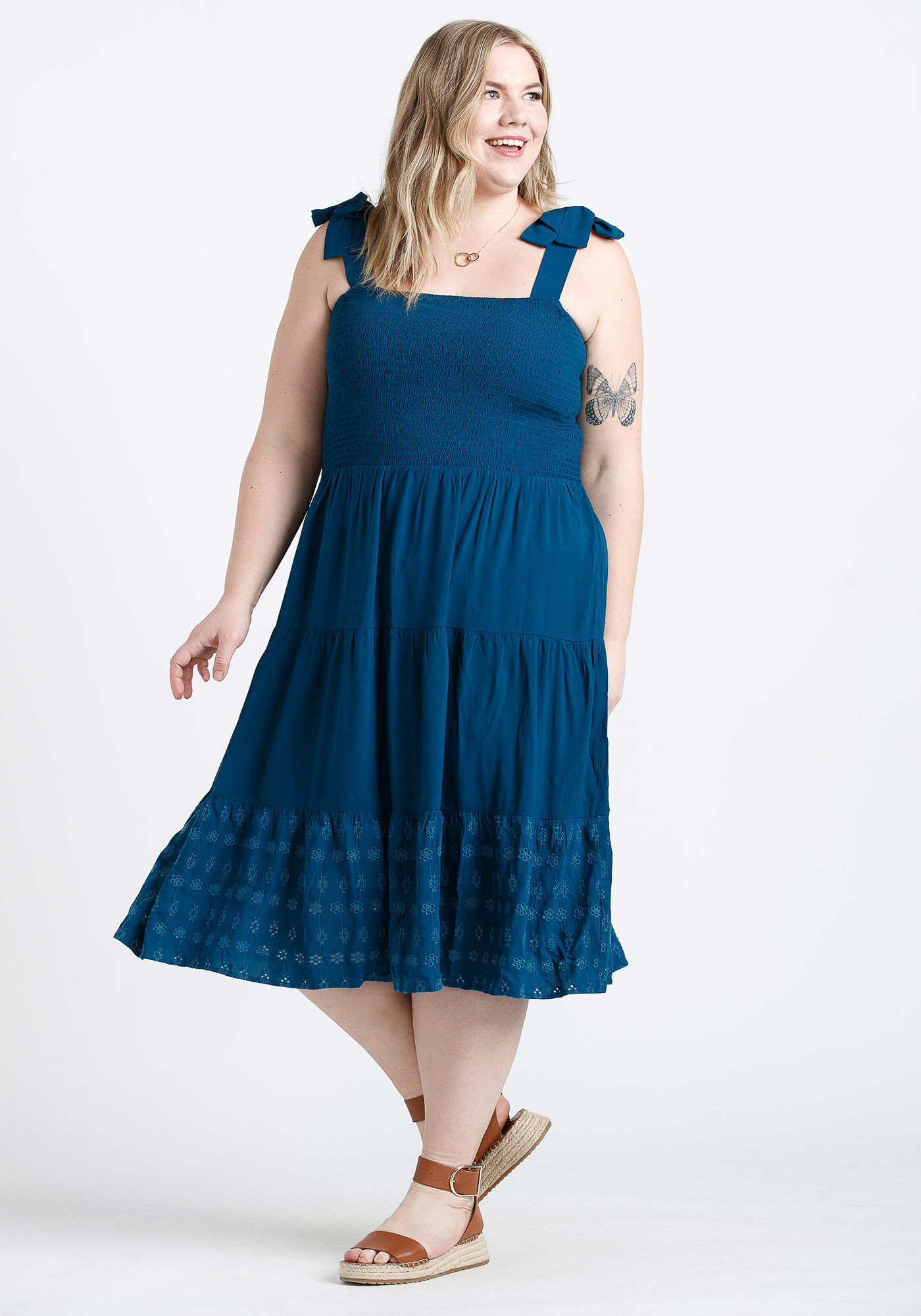 Women's Eyelet Midi Dress Image 3