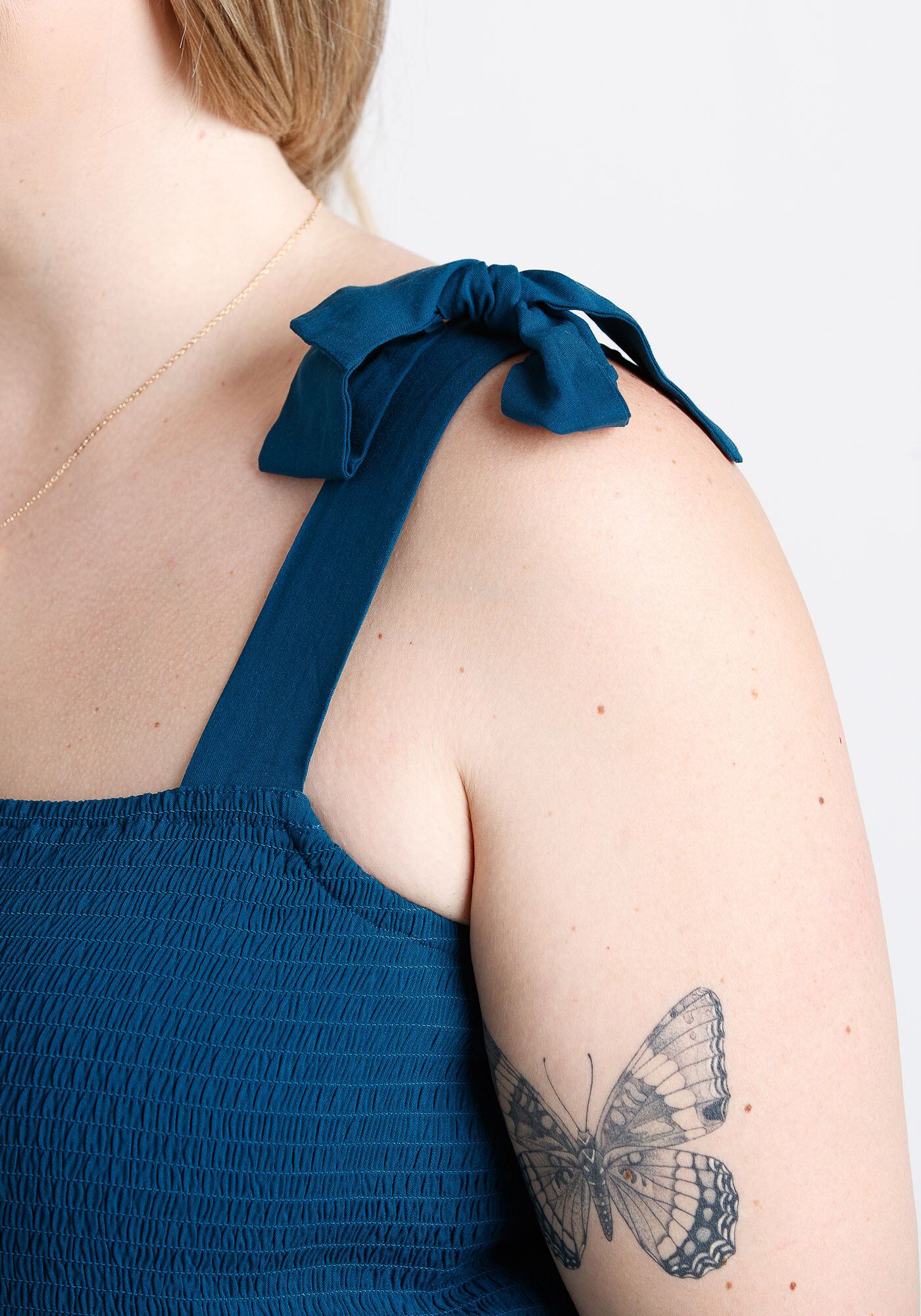 Rated 4 out of 5 by from pretty and comfortable I love this dress and I'm not a dress girl its so comfortable light and airy and a great length for me at 5.2 its mid calf so I can do what I need to do without worrying about flashing anyone. The only thing I had to change was the straps the bows undo but the straps are stitched and a bit too long for me so at first I added a safety pin then I took the 2 mins to undo the stich and just tie it no worries if the bows come undone as the top is a tube top so well fitted and not going anywhere.