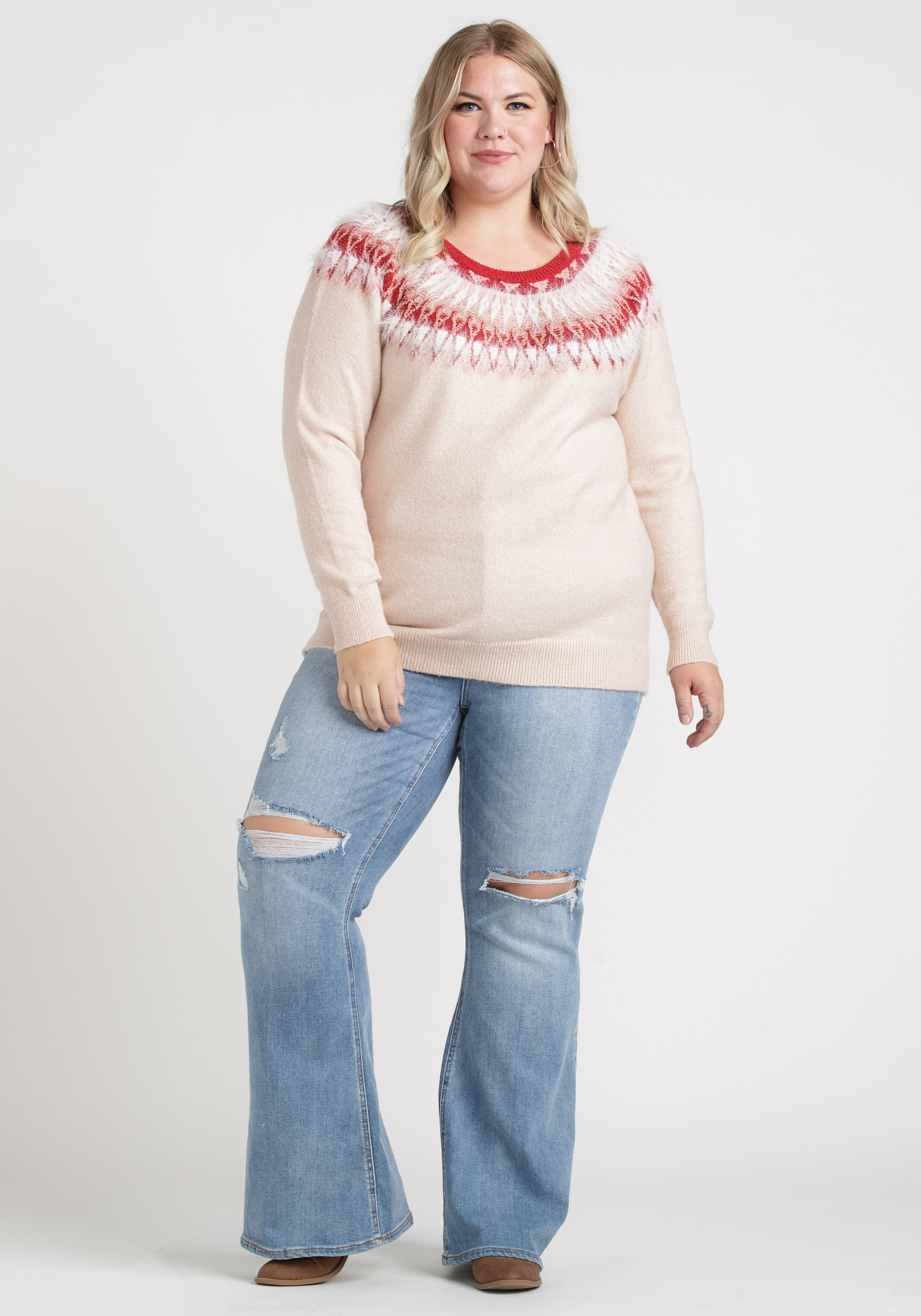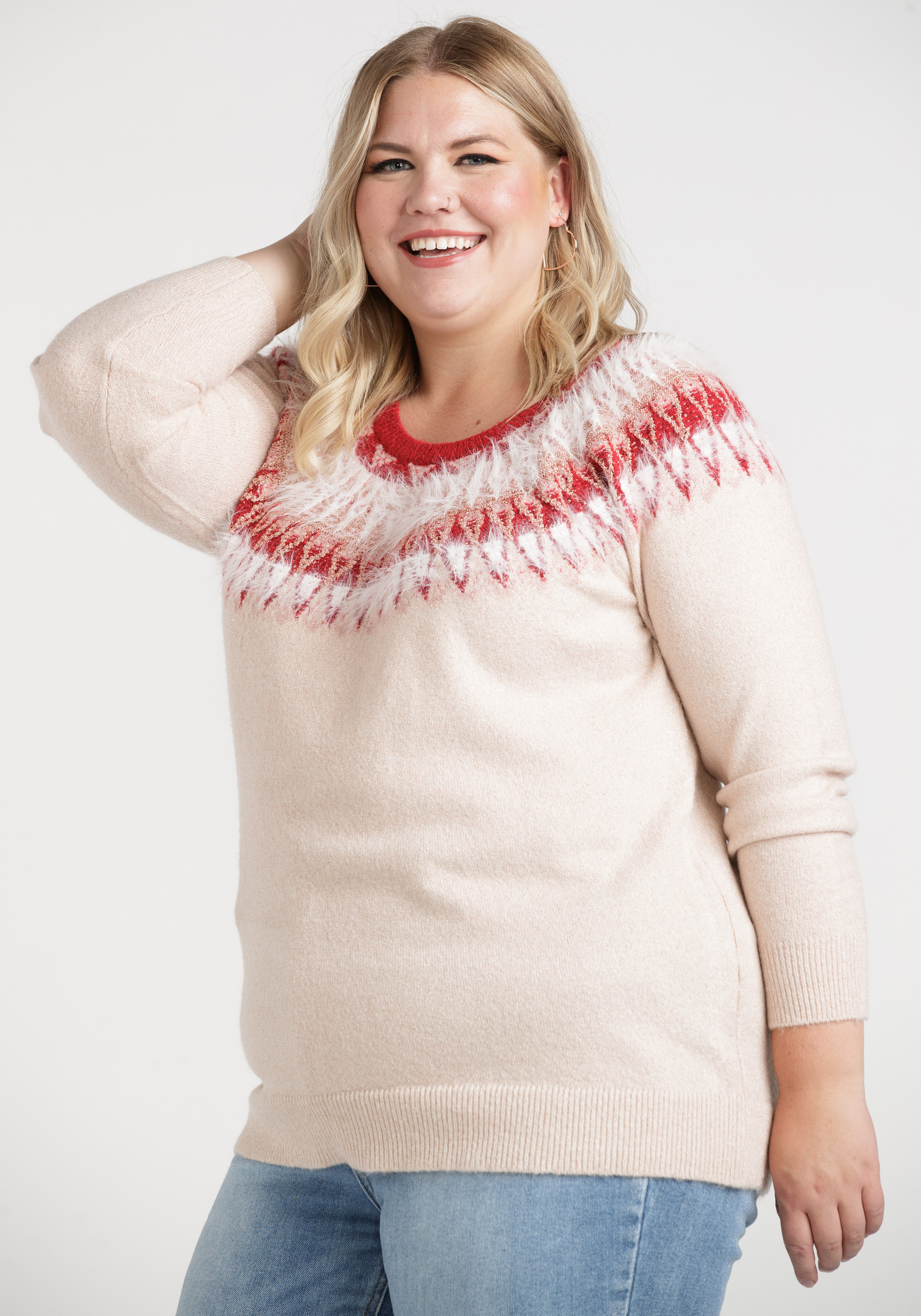 Rated 5 out of 5 by from Soft sweater I bought this sweater in a sale price and I am so happy that I did. It is a very soft and comfy sweater with a pretty design.
