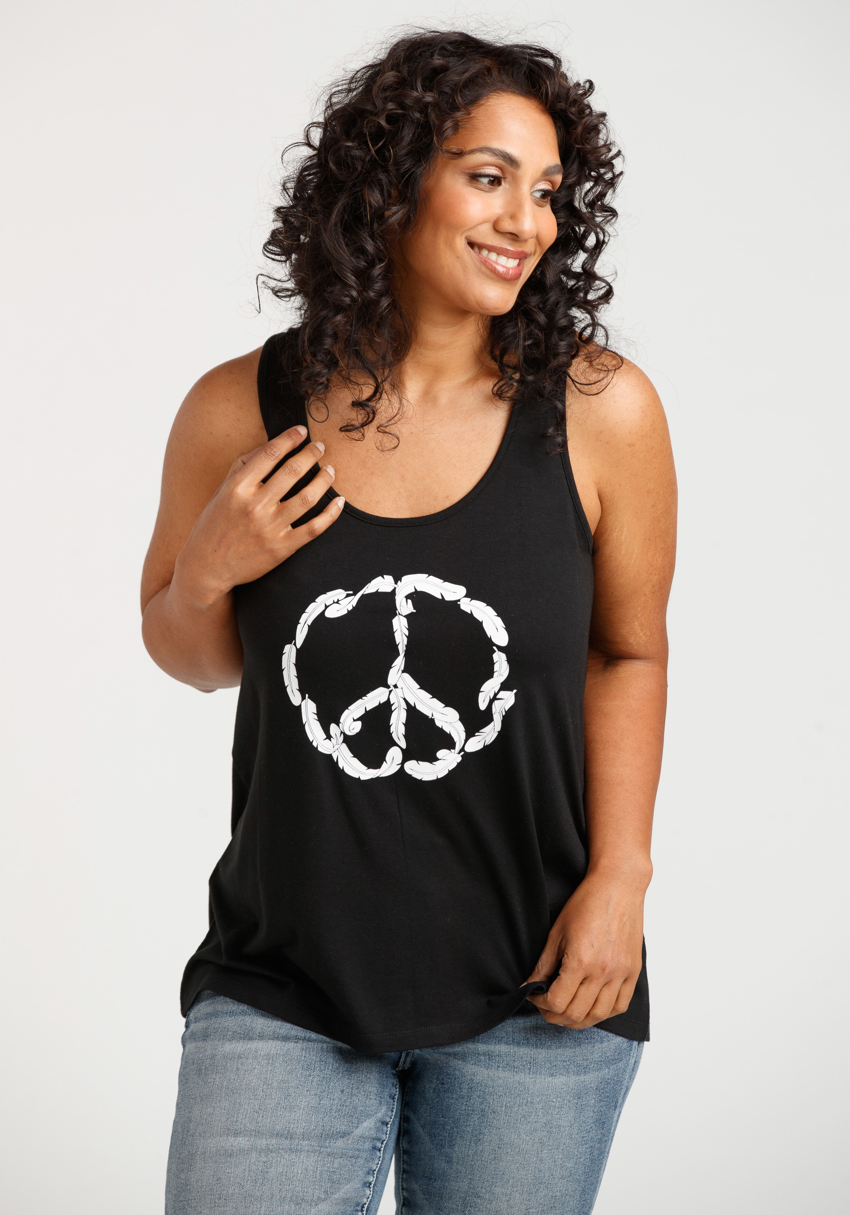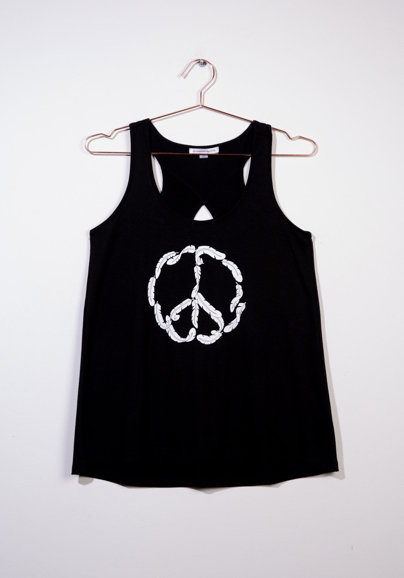 Women's Feather Peace Sign Keyhole Tank Image 1