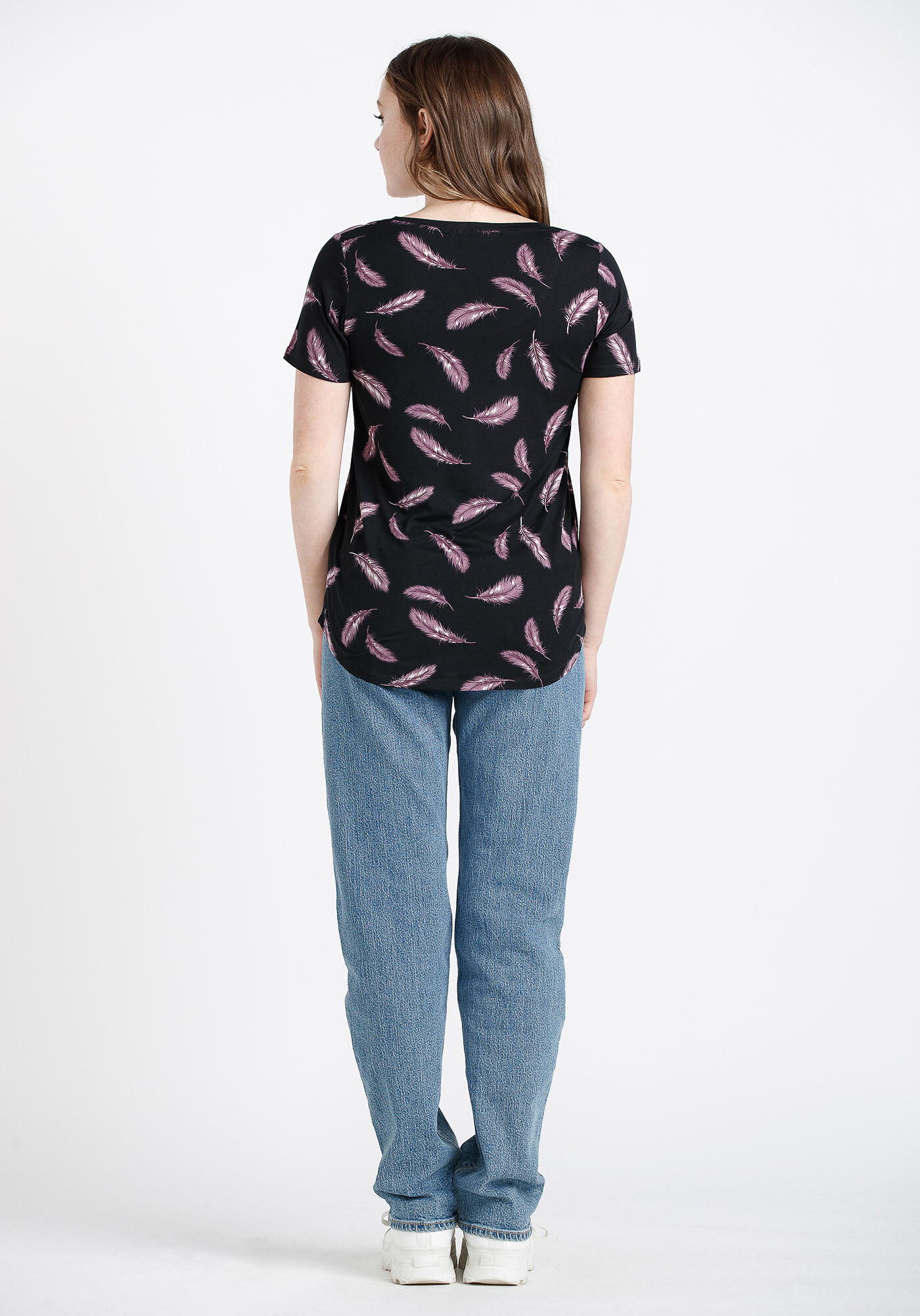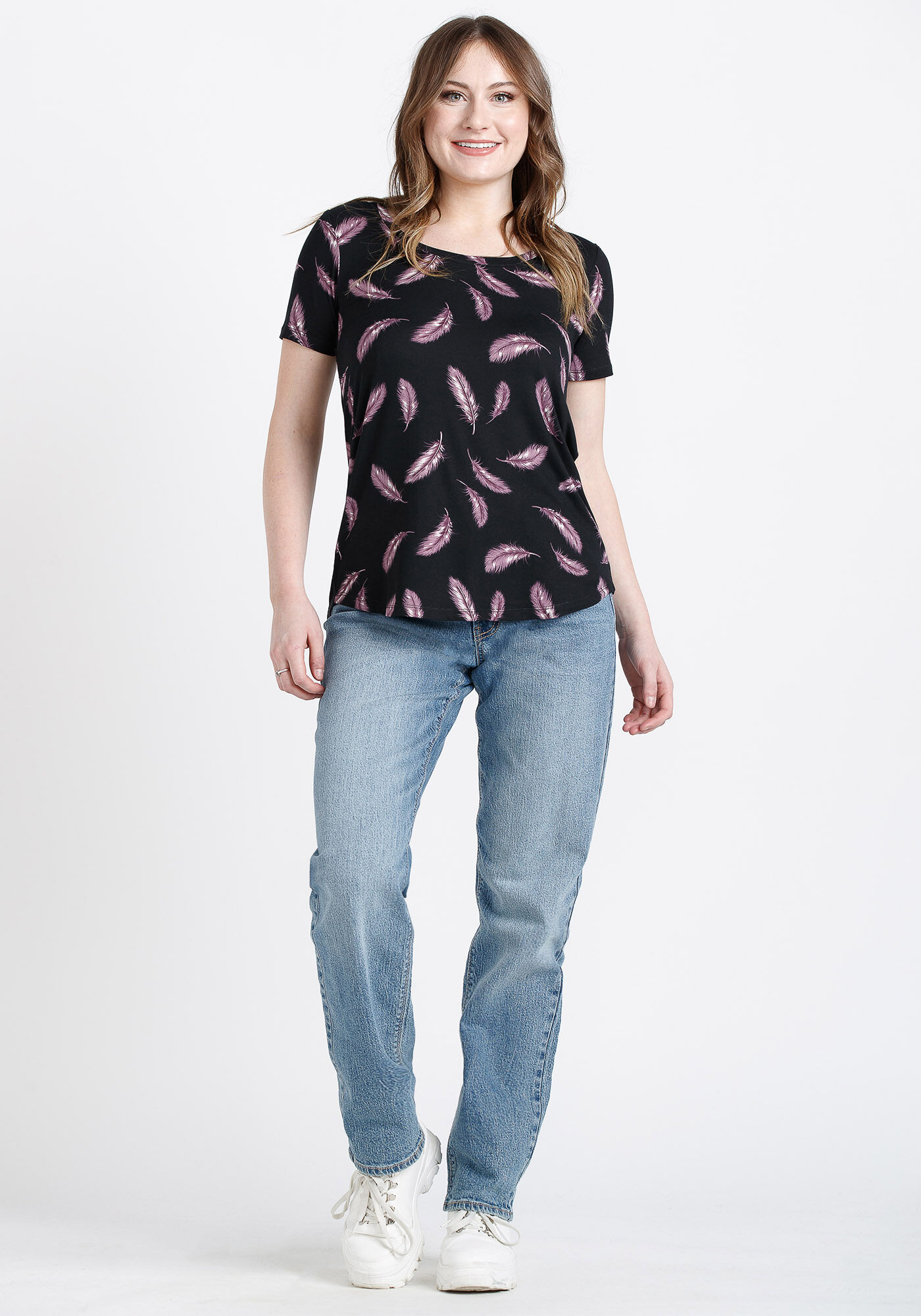 Rated 4 out of 5 by from Comfortable and so cute I bought this top and I’m so pleased how versatile it is in my wardrobe. It is so comfortable with a flow to it. It is so cute with my skort, black pants, shorts or jeans. I love this top and would recommend it to anyone.