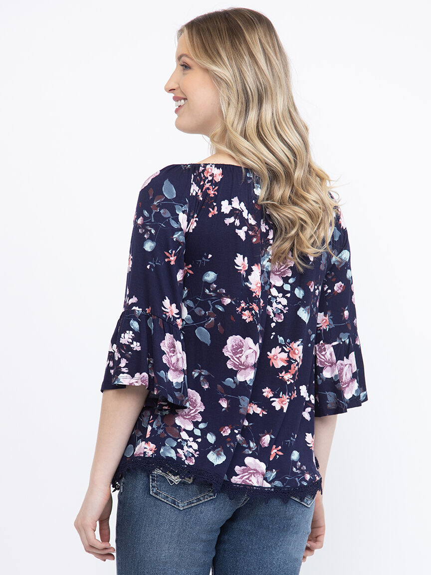 Women's Floral Bell Sleeve Top Image 2