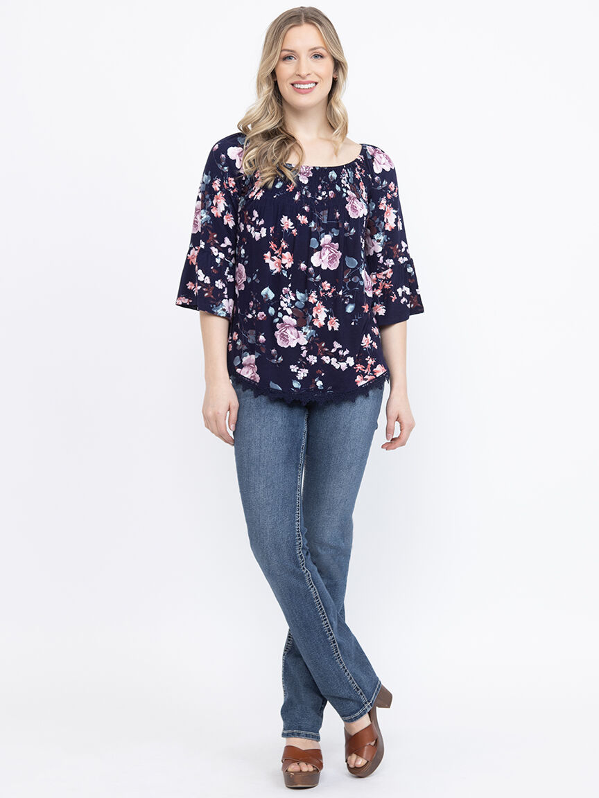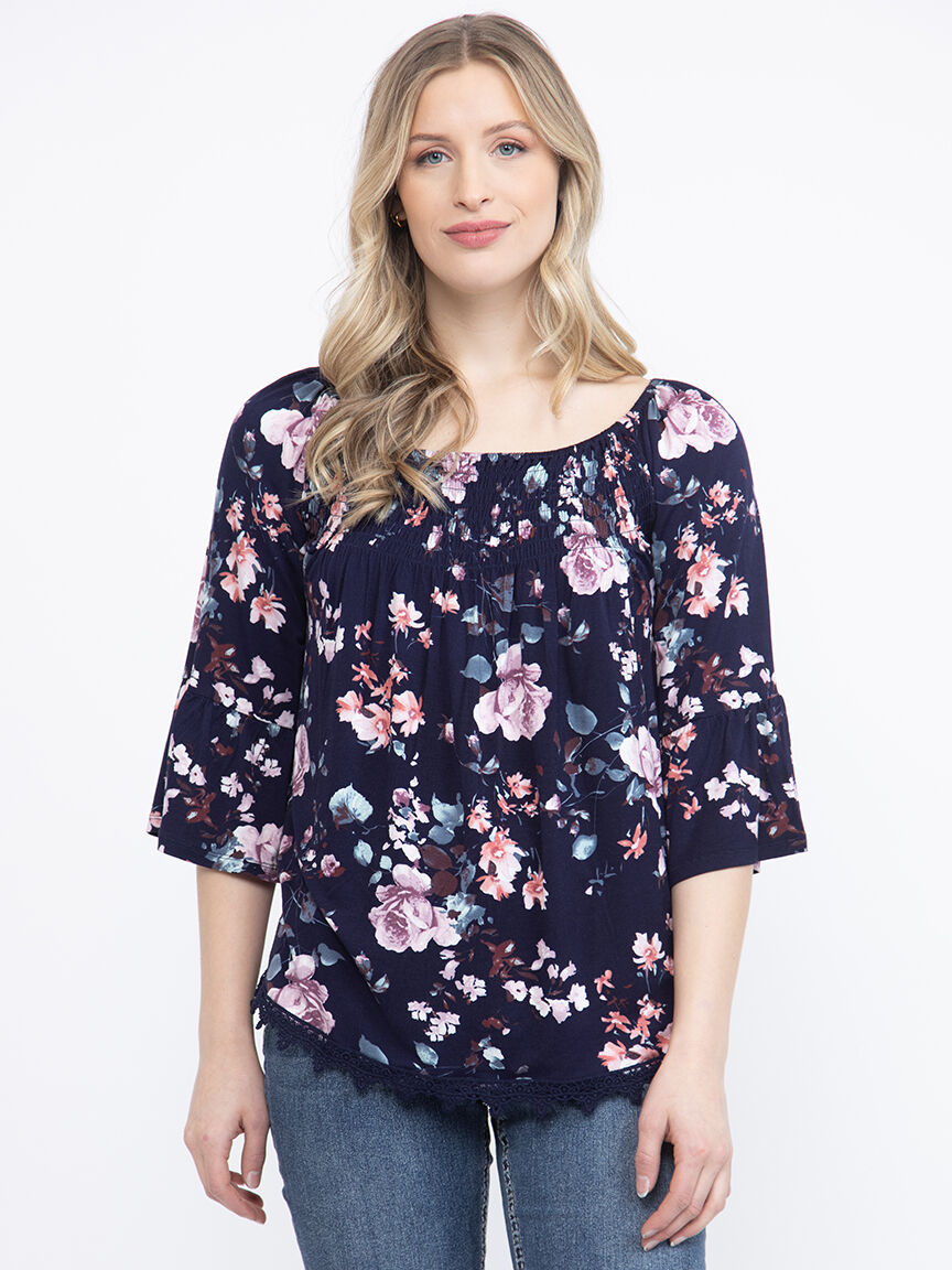 Women's Floral Bell Sleeve Top Image 1