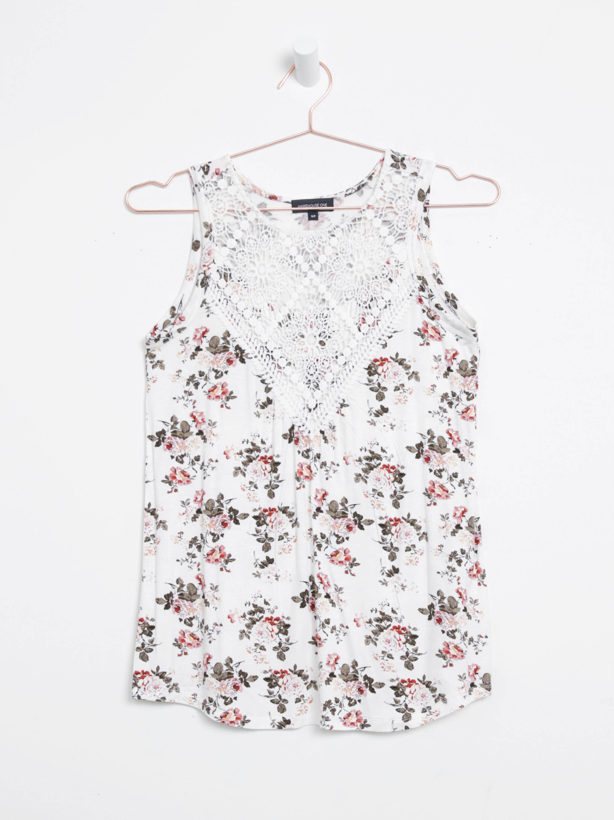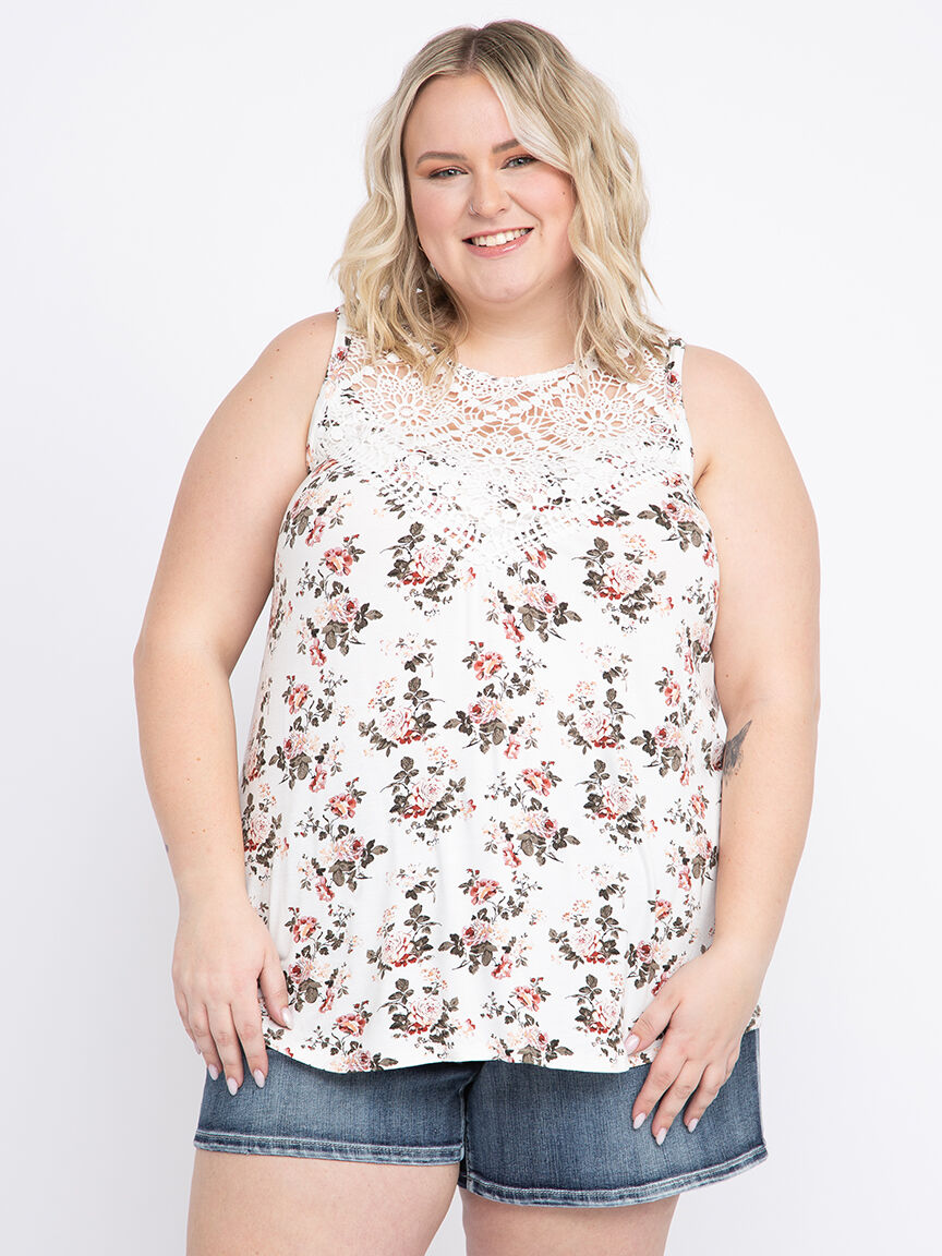 Women's Floral Crochet Neck Tank Image 1