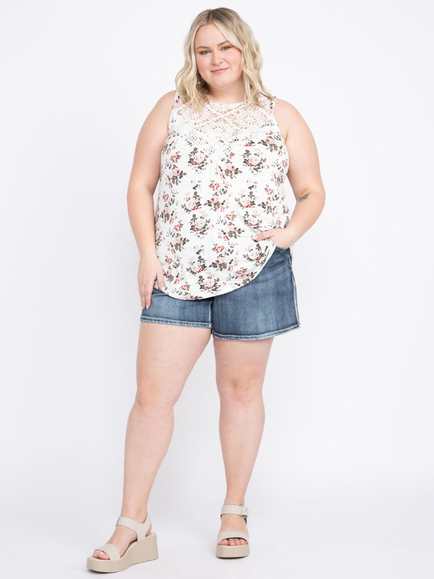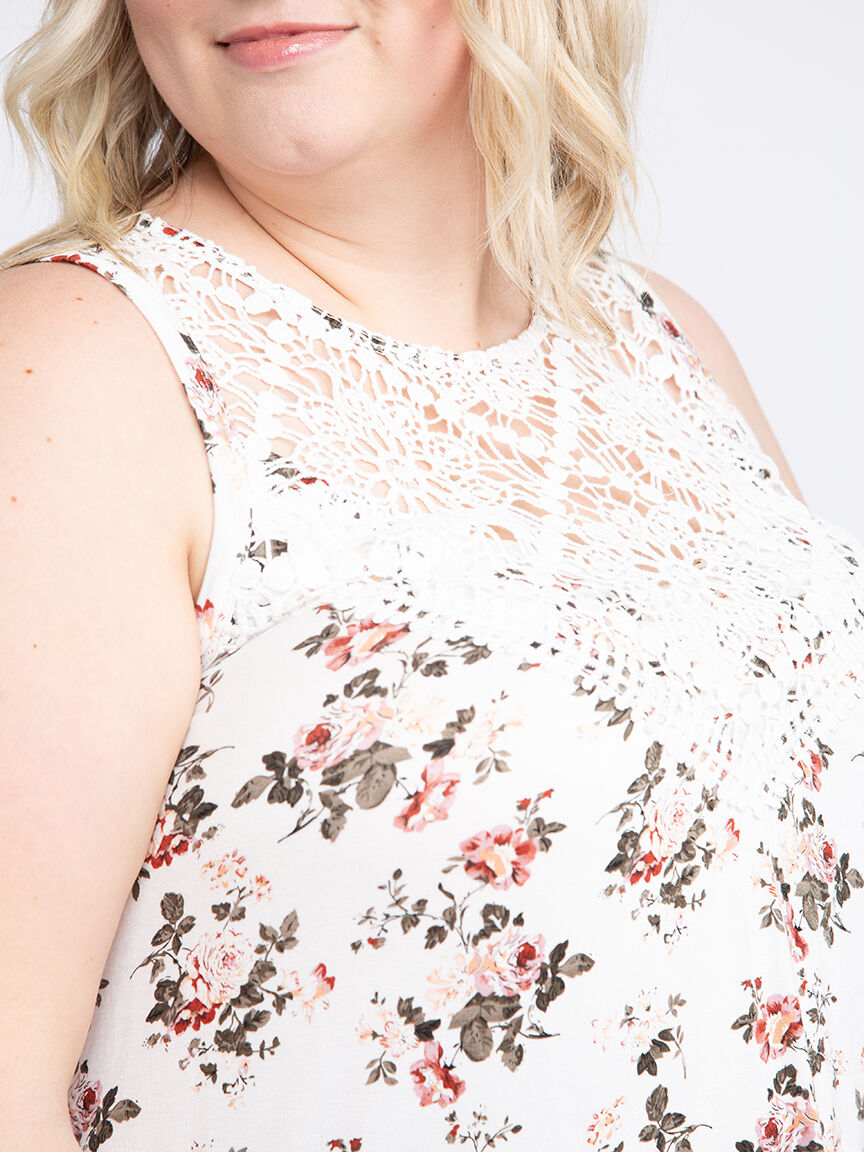 Women's Floral Crochet Neck Tank Image 3