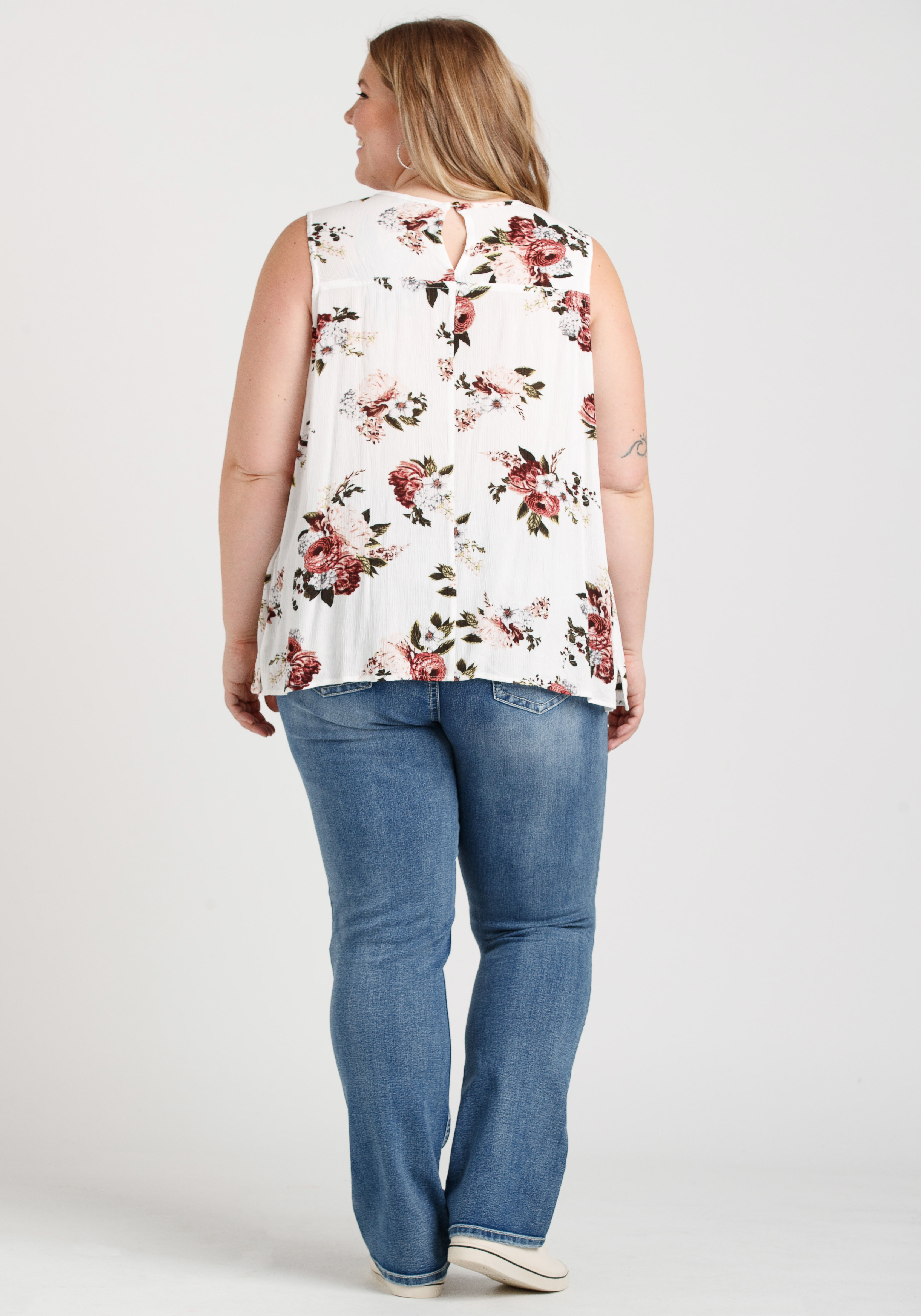 Women's Floral Keyhole Tank Image 3