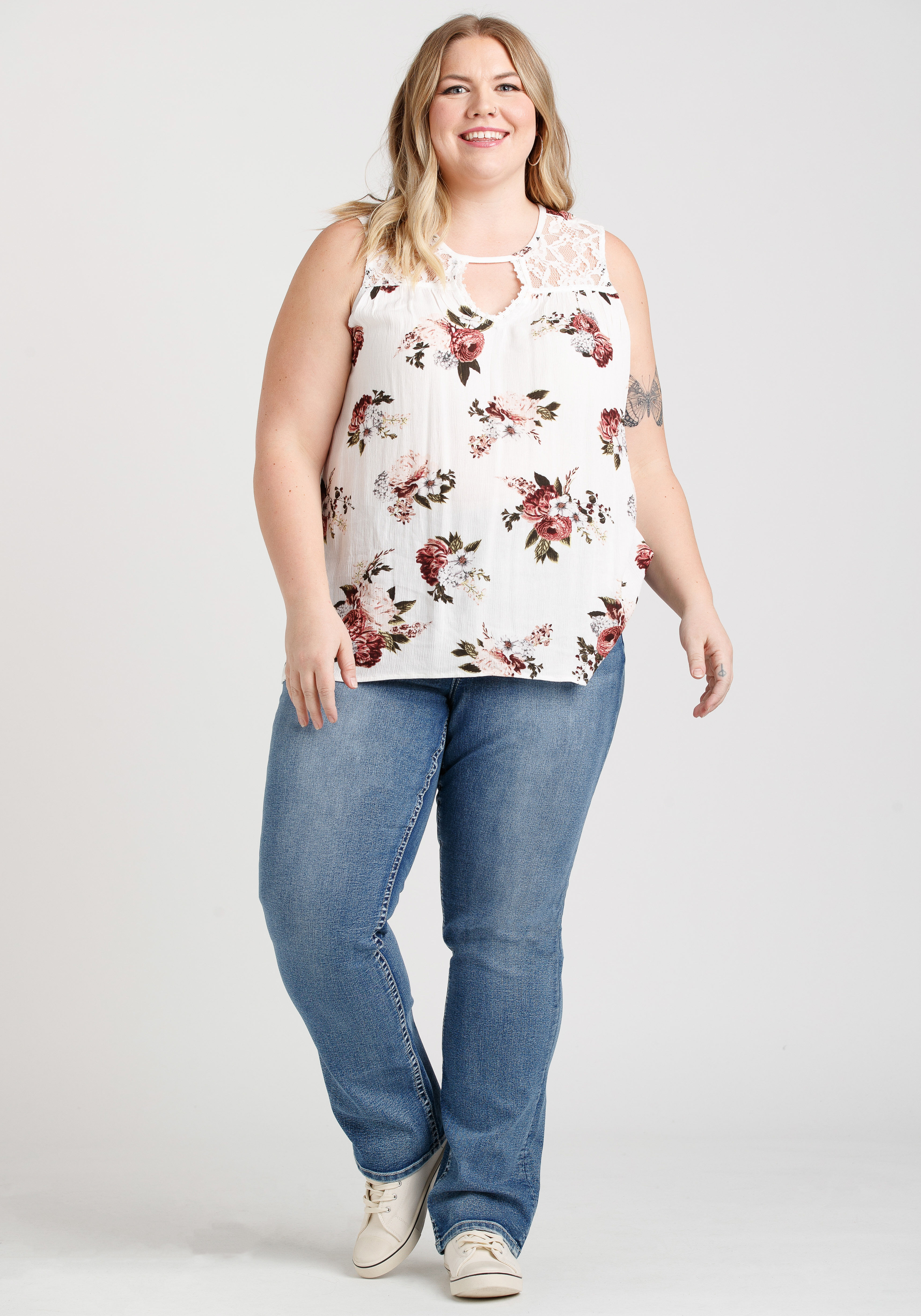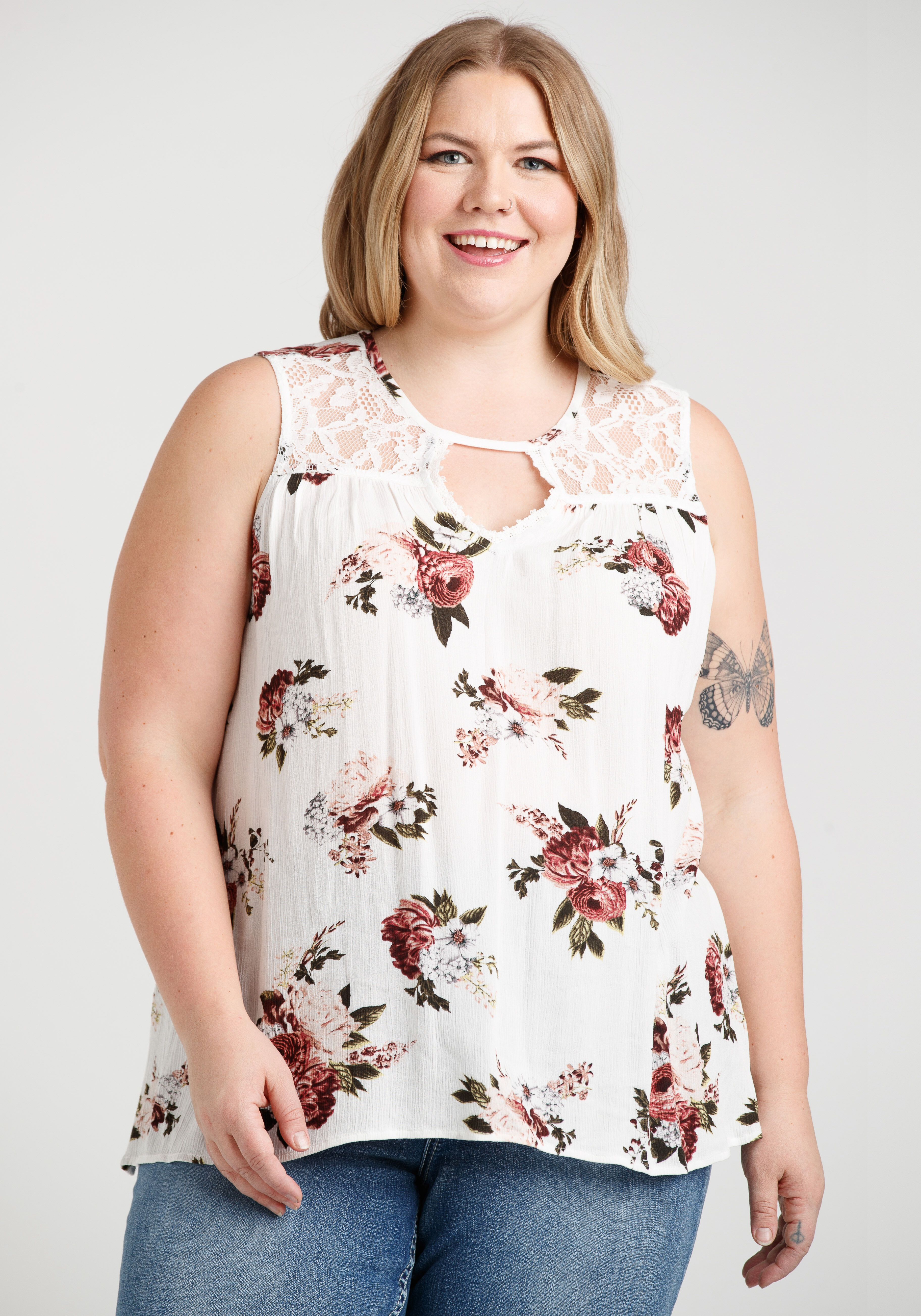 Women's Floral Keyhole Tank Image 1
