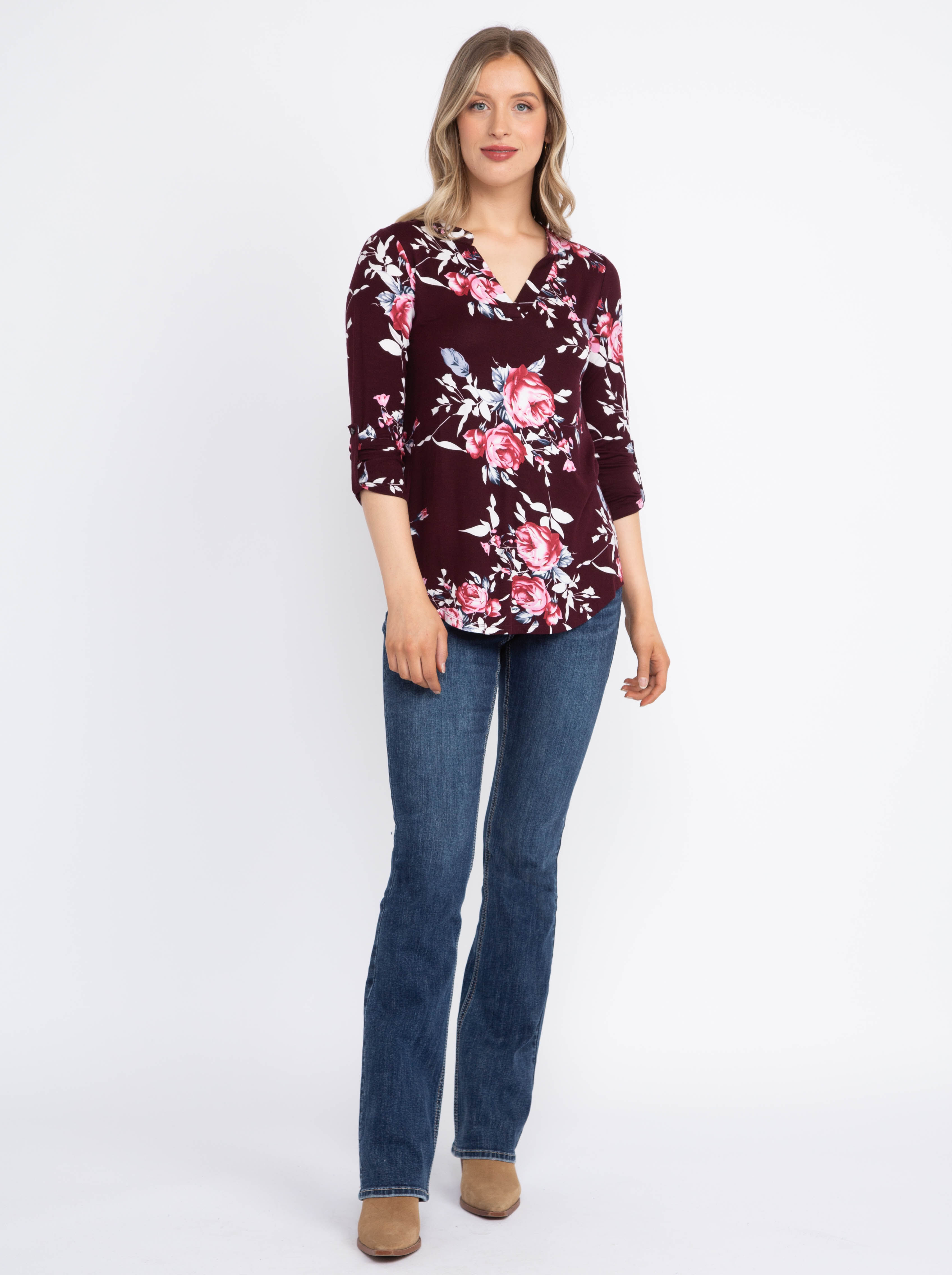 Rated 5 out of 5 by from Beautiful top The pucture doesn't do this top justice. Such vibrant bold color. The length is perfect for leggings and the fit is slightly fitted to show off my shape. Love this top!