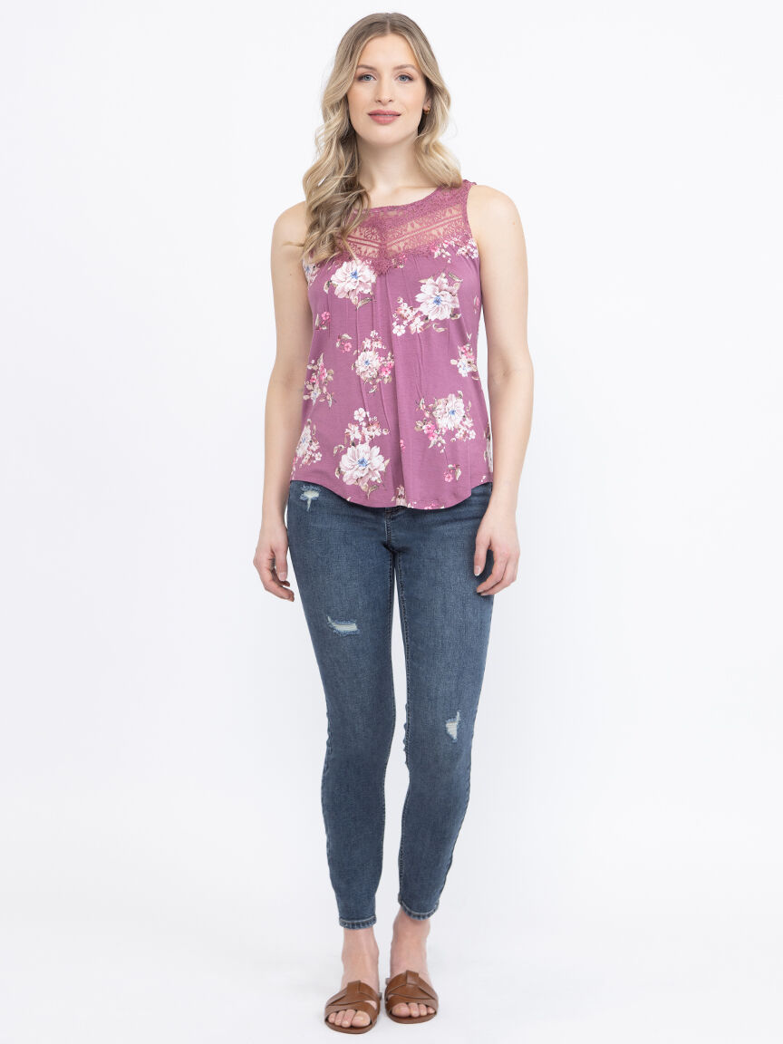 Women's Floral Lace Neck Tank Image 1