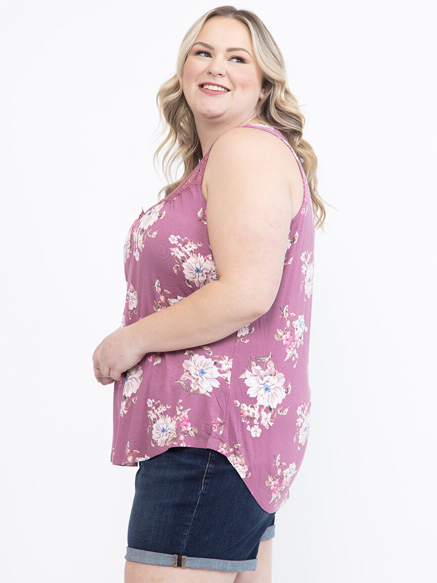 Women's Floral Lace Neck Tank Image 3