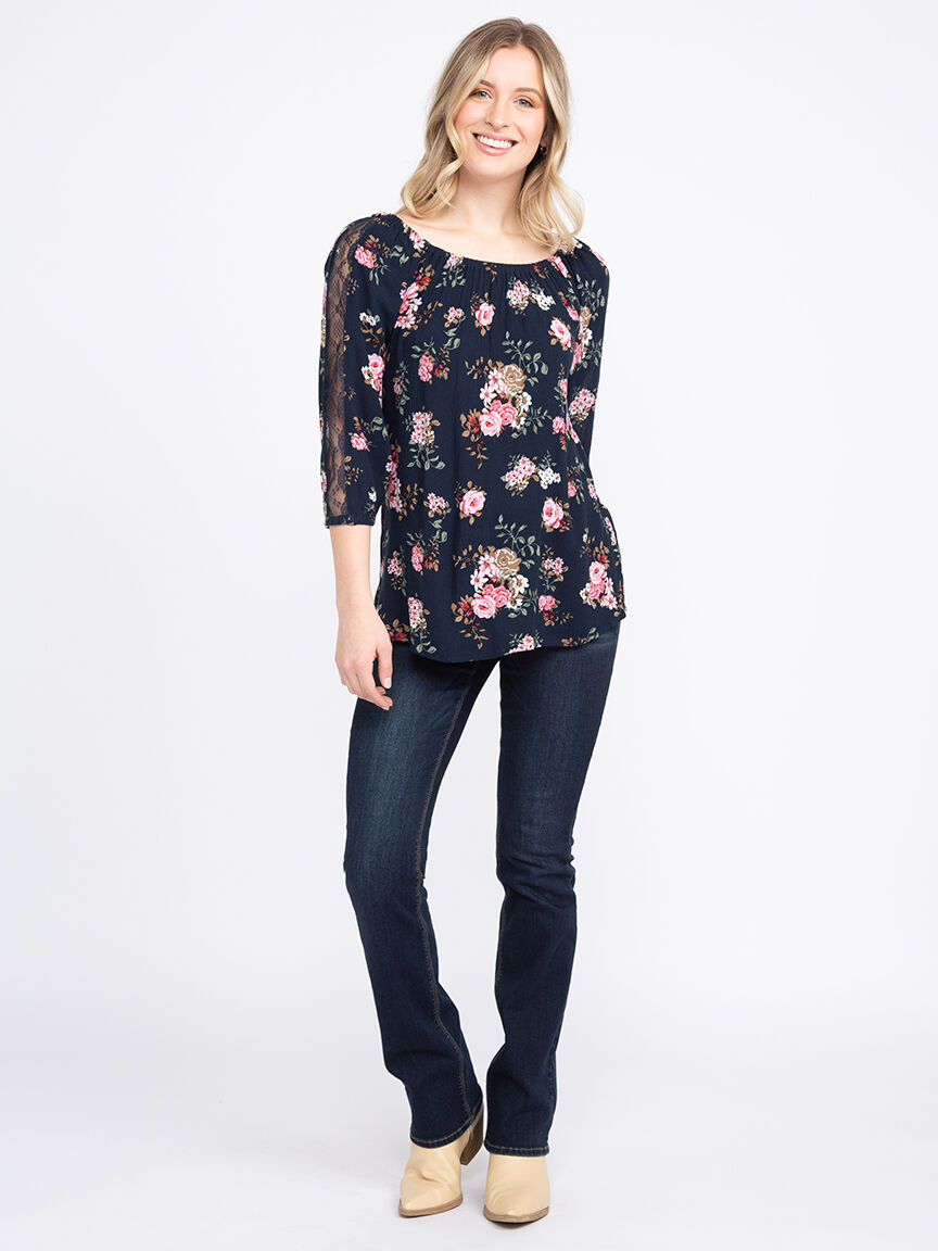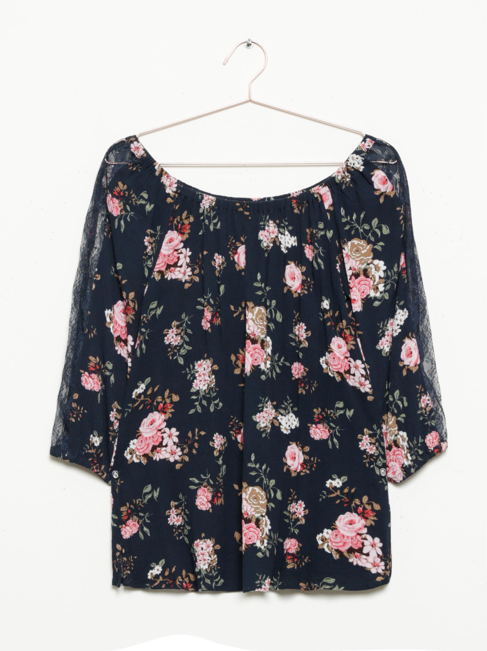 Rated 5 out of 5 by from Floral Lacey Long Sleeve Blous I really love the colour and the flowers with the Lacey strip on the sleeves makes it look cute and flirty. Note: I chose it fits a little on the smaller size because I’m a 2XL and it fits but if you have wide hips or a bigger tummy it might be a little snug, or if you have a bigger chest it will be again a little snug too. Best to try on different sizes before purchasing. 😇