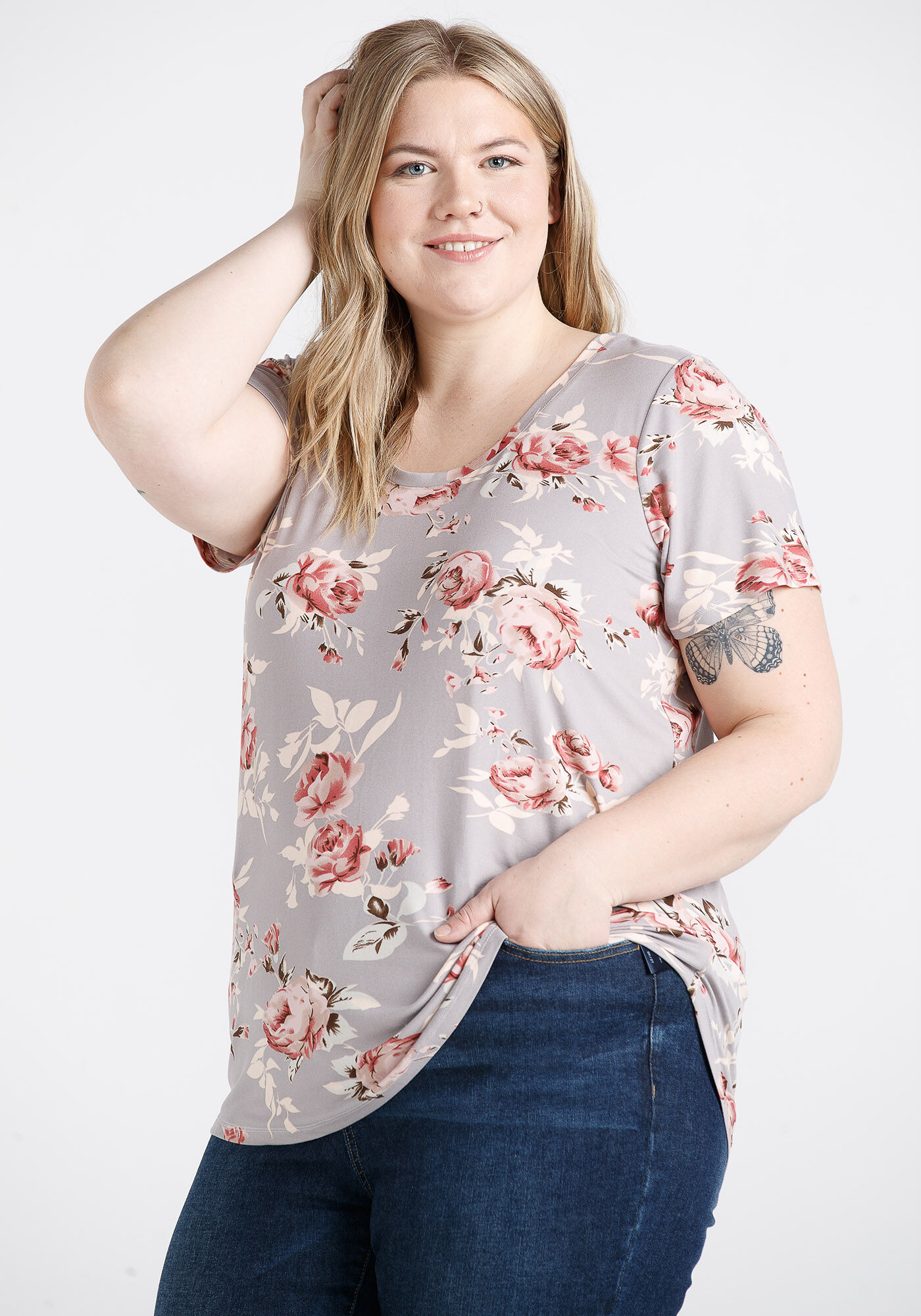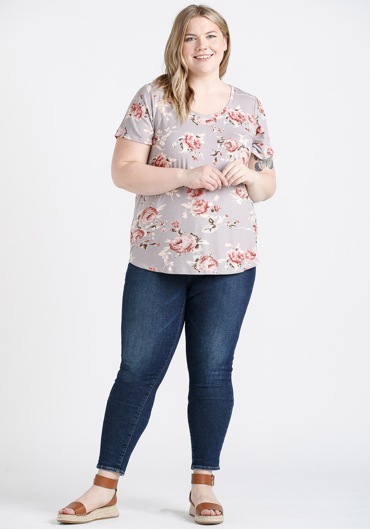 Women's Floral Scoop Neck Tee Image 4