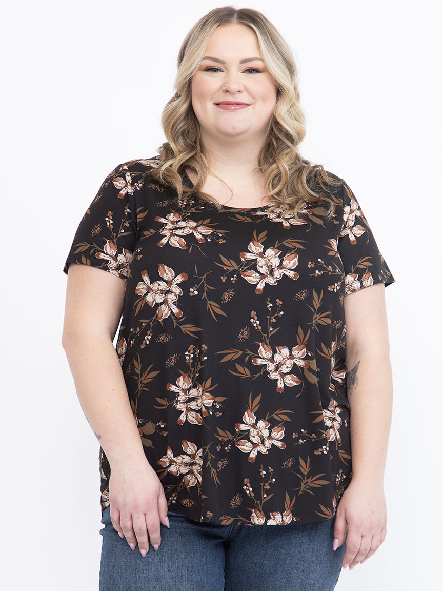 Women's Floral Scoop Neck Tee Image 1