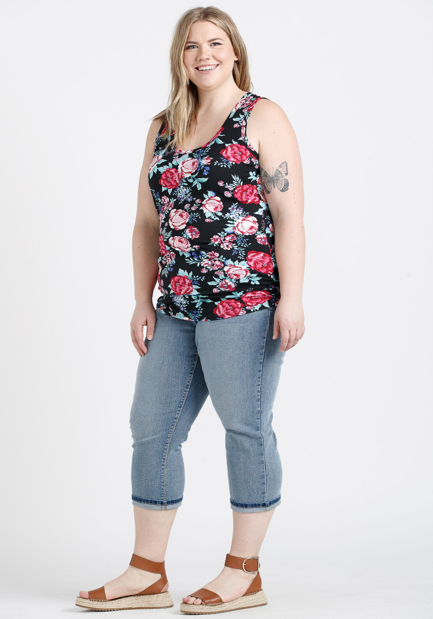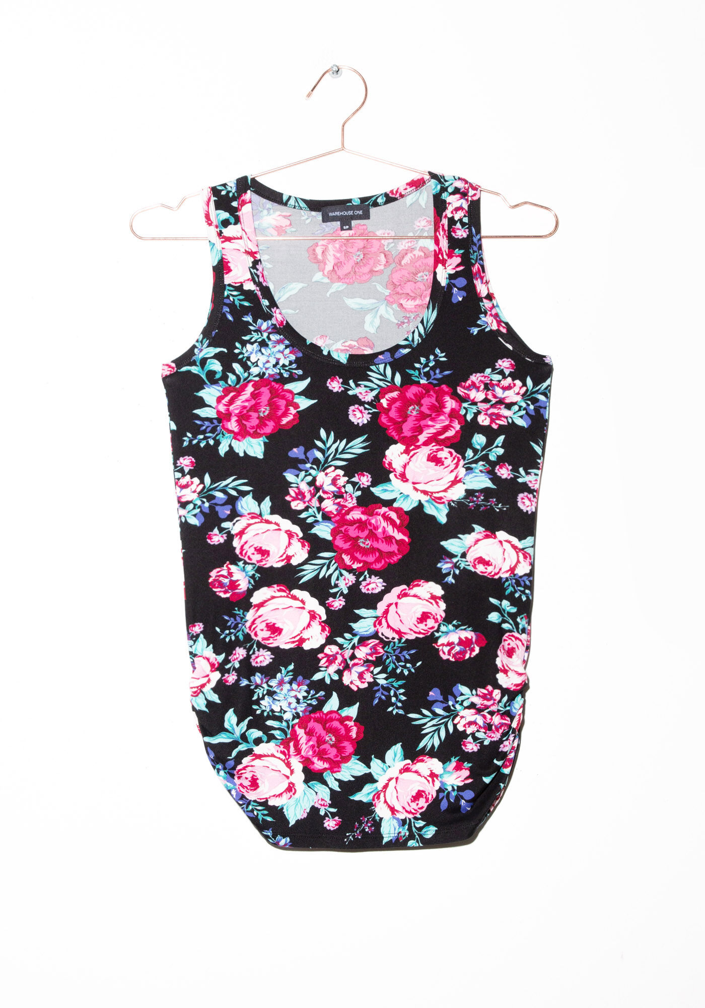 Women's Floral Side Ruched Tank Image 1